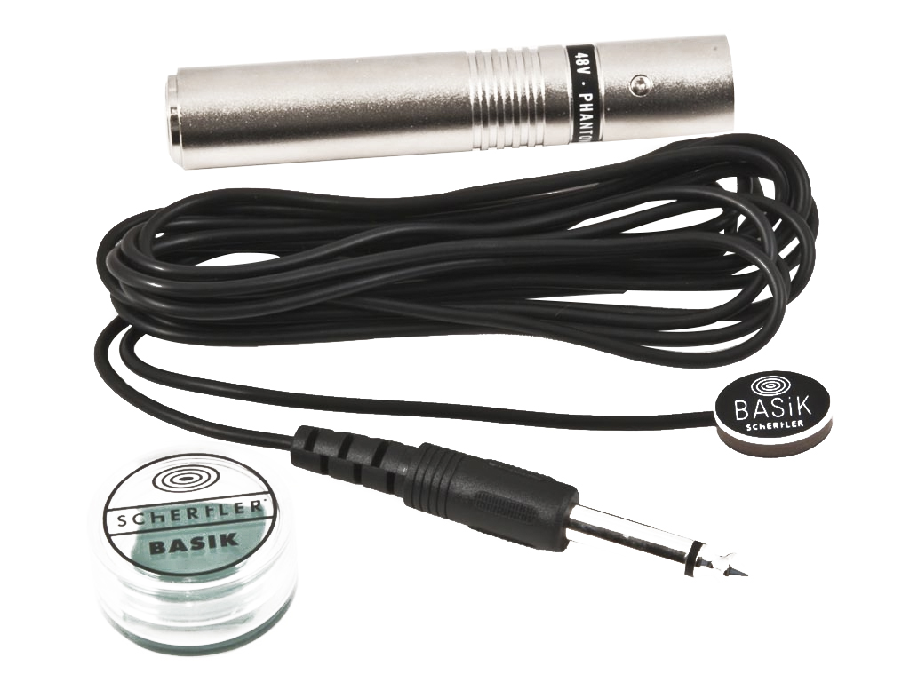 Comprende il microfono a contatto BASIK, l'adattatore JACK MONO, il necessario per l'applicazione e l'adattatore phantom power utilizzabile in combinazione con mixer ed altre apparecchiature in grado di fornire 48V di alimentazione al Basik.