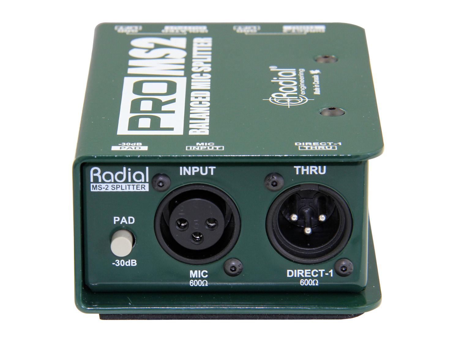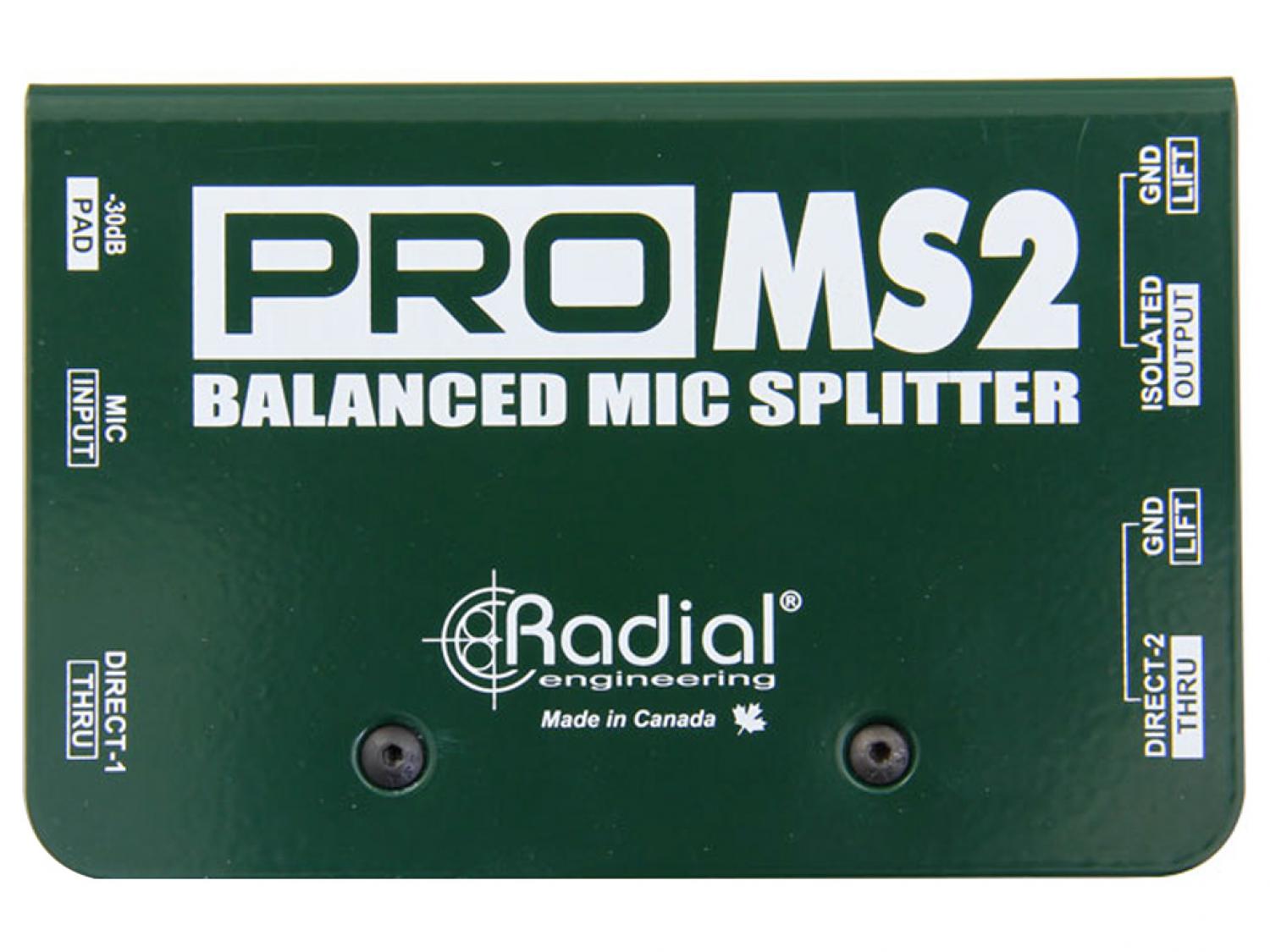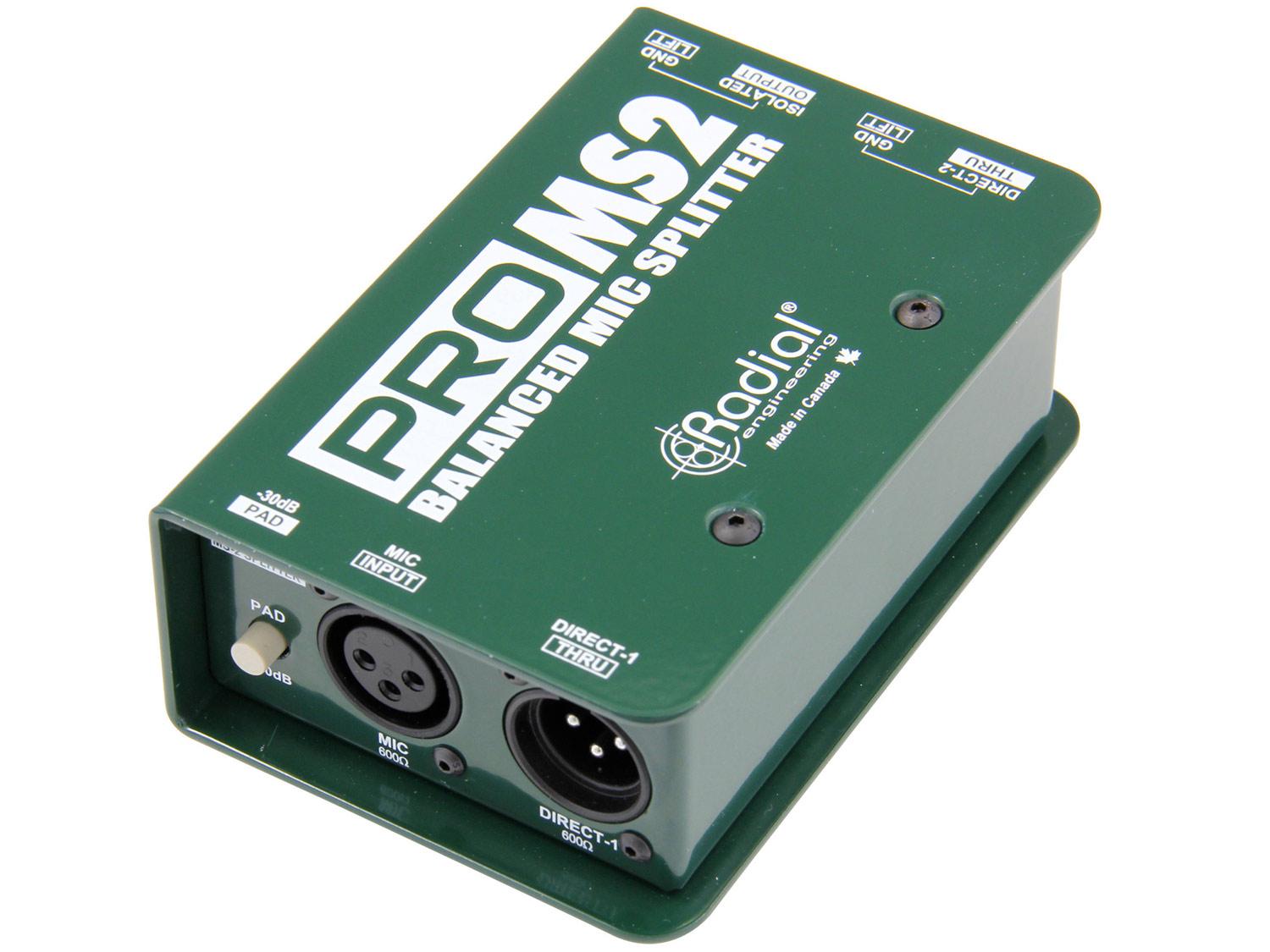 Il Radial ProMS2 è uno splitter per microfono ad alte prestazioni che accetta un segnale microfonico bilanciato e lo invia a tre uscite contemporaneamente. Come dispositivo passivo, non c'è bisogno di alimentazione - è sufficiente collegarlo ed il ProMS2 prende automaticamente vita per fornire un audio inconfondibile senza artefatti o colore. La magia all'interno del ProMS2 è un trasformatore Eclipse ET-MS10 premium. Questo è dotato di un nucleo laminato in nichel che offre un'ampia risposta in frequenza ed una gestione eccezionale del segnale con una distorsione quasi nulla a tutte le frequenze.
