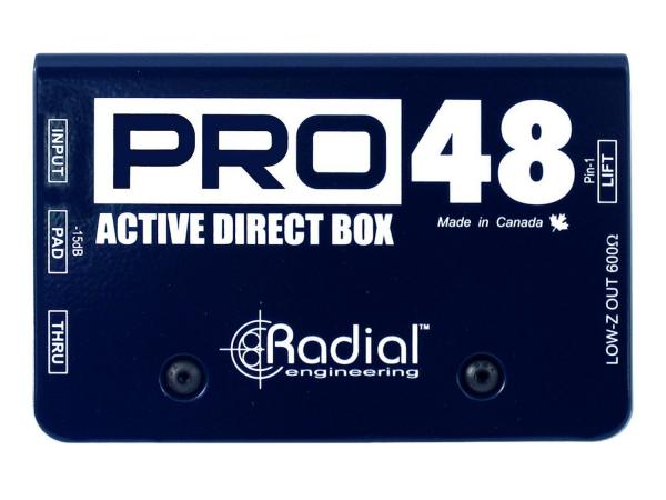La Pro48 Radial è una compatta Direct Box attiva ad alte prestazioni alimentata tramite Phantom 48V, progettata specificamente per gli odierni strumenti ad alto guadagno. L'innovativo alimentatore switching interno della Pro48 aumenta in modo significativo l'Headroom producendo meno distorsione, ottenendo una risposta morbida e lineare che si estende da 20Hz ben al di sopra di 40kHz. Ciò si traduce in un segnale naturale, incolore, altrettanto buono o addirittura migliore di DI Box che costano molte volte di più. Le prestazioni superiori rendono la Pro48 un candidato ideale per l'utilizzo con bassi attivi alimentati con batterie, chitarre acustiche che tendono a sovraccaricare altre DI Box.