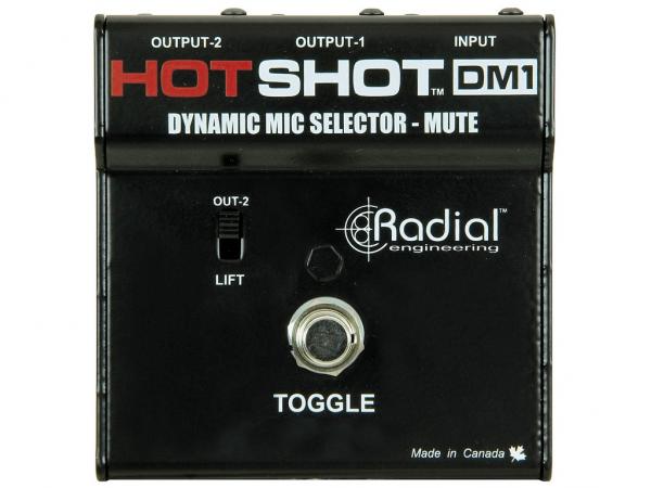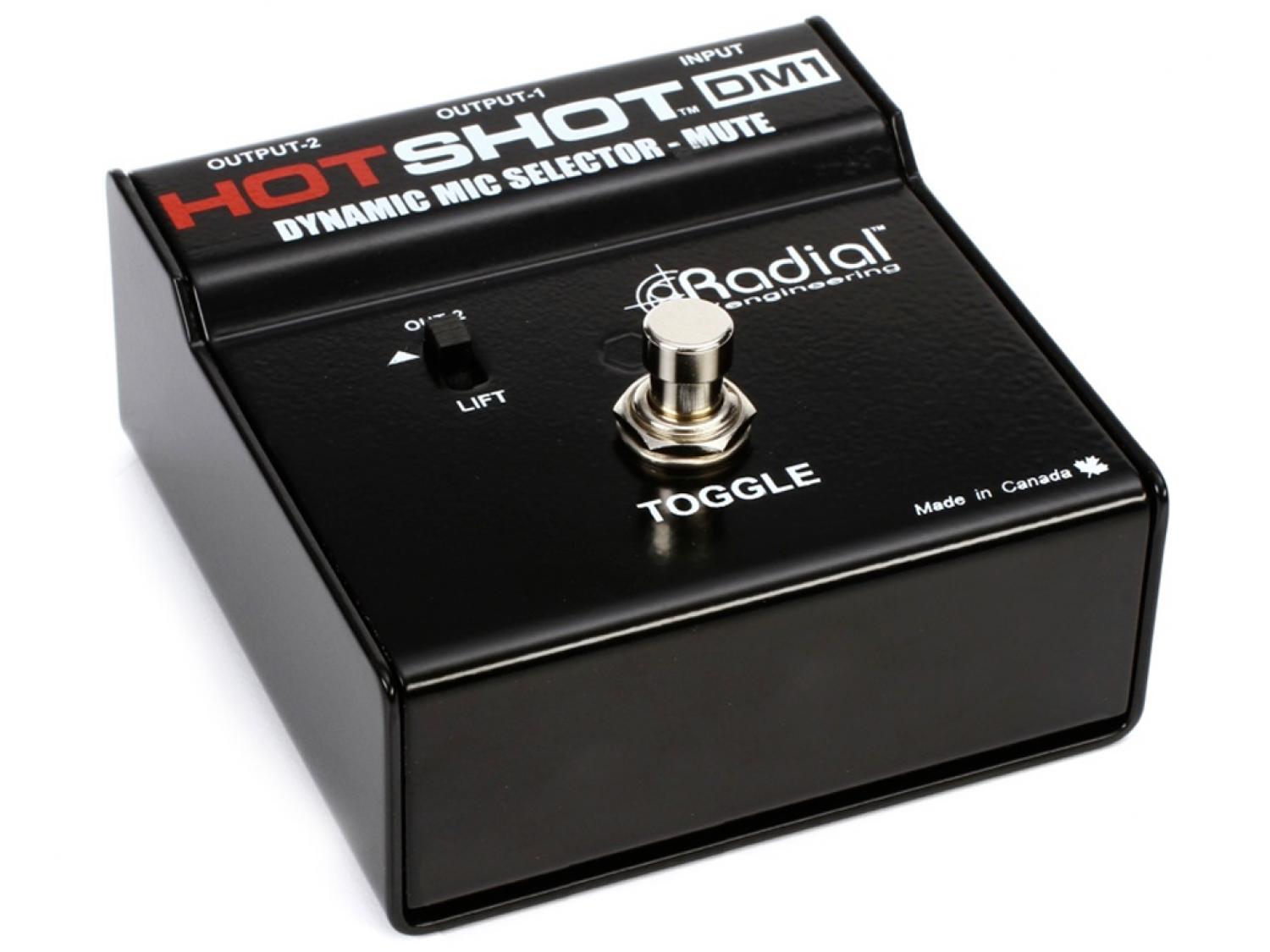 Progettato per affrontare i problemi di comunicazione sul palco per gli artisti che impiegano sistemi di monitoraggio in-ear, il HotShot DM-1 è la combinazione di uno splitter di segnale microfonico e switch mute che permette di preme un pedale per silenziare il microfono e reindirizzare il segnale al sistema di monitoraggio di palco o di parlare con i membri della band o con i tecnici, mentre sei sul palco.