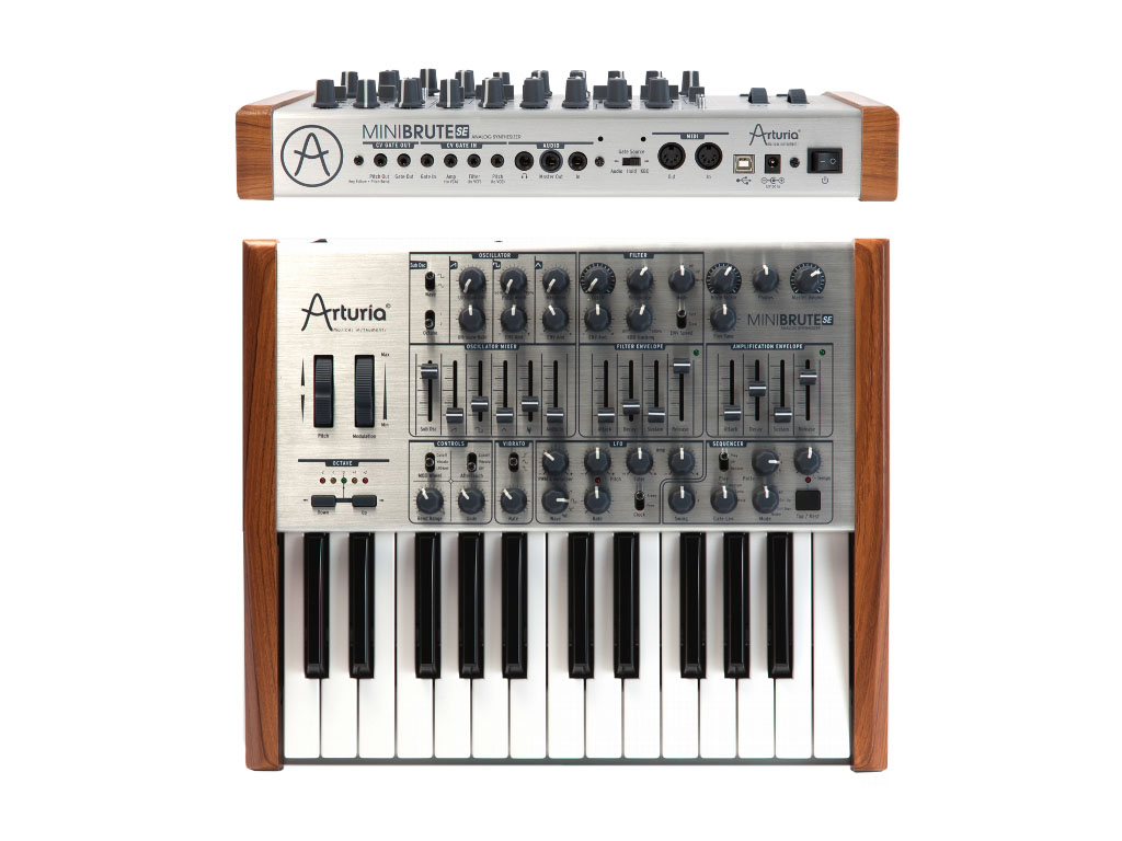 Il MiniBrute SE può contare sullo stesso design "pure analog" del MiniBrute. I VCO analogici forniscono un suono analogico potente e caldo con diverse opzioni. Nessun altro sintetizzatore in questa fascia di prezzo, ma anche in fasce superiori, offre un oscillatore così avanzato in grado di offire queste sonorità, superiori anche a synth con 2 o 3 oscillatori. Inoltre il potente filtro Steiner-Parker fornisce al MiniBrute SE un carattere unico e inconfondibile. Con il valore aggiunto del 'Brute factor' nella sezione filtri, si ha una combinazione letale che metterà a dura prova gli altoparlanti. Con caratteristiche quali 2 LFO ad ampio range, 2 inviluppi, pitch bend, mod wheel, aftertouch e molto atro, il MiniBrute si pone un gradino al di sopra di tutti i sintetizzatori della sua fascia. L'ingresso e le uscite standard 1V per ottava CV/GATE, i MIDI I/O e la connettività USB consentono al MiniBrute di interfacciarsi con tutti i modulari moderni, con computer e con dispositivi MIDI di ogni tipo. Funziona addirittura come interfaccia USB/MIDI o CV/GATE. Il nuovo step sequencer estende di molto le opzioni di base per suonare con il MiniBrute SE. Sono a disposizione 6 sequenze con 64 step ciascuna per creare fraseggi musicali multipli. Il sequencer può fare molto di più di una semplice riproduzione delle sequenze. Si possono creare nuovi fraseggi musicali oltre a quelli già esistenti cambiando le modalità di riproduzione, il tempo di gate e le opzioni swing in tempo reale dal pannello frontale. Le nuove funzioni per il sequencing sono un fattore moltiplicatore fondamentale per aumentare l'ispirazione e creare nuove interessanti performance musicali.