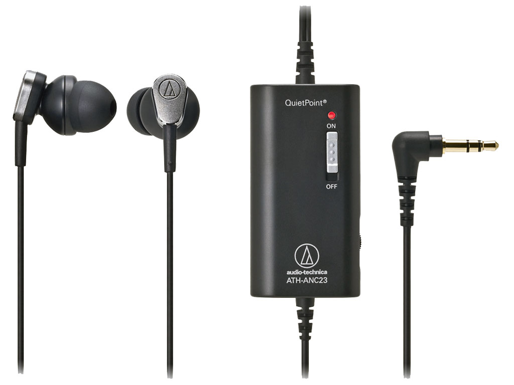 Gli auricolari ATH-ANC23 QuietPoint Active Noise di Audio-Technica riduconon il rumore di fondo fino al 90%, offrendo il suono superiore che rende Audio-Technica leader nel mondo. Progettati per creare un ambiente di ascolto confortevole in aree con alto livello di rumore ambientale, queste cuffie in-ear sono dotate di un microfono in miniatura in ciascun auricolare che capta il rumore ambientale (ad esempio traffico, impianti di trasformazione, ecc). L'elettronica interna crea un'onda a cancellazione del rumore sfasata di 180° rispetto al rumore ambientale. Questa onda si comporta come un cancellatore di rumore: annulla i fastidiosi suoni che vi circondano senza ridurre l'audio che si desidera ascoltare.