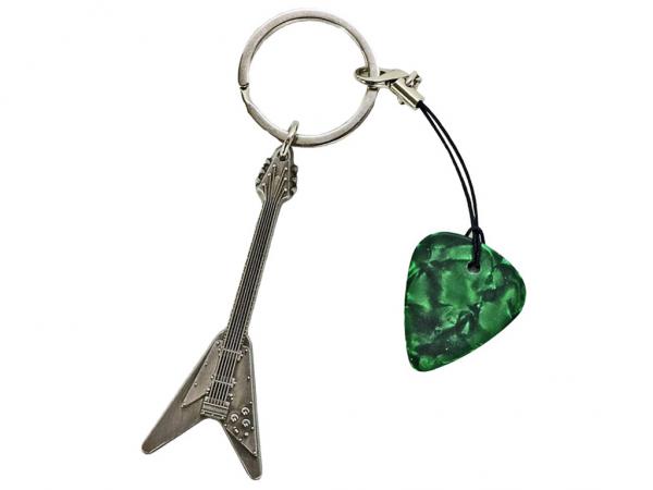 PORTACHIAVI CHITARRA A V IN METALLO CON PLETTRO