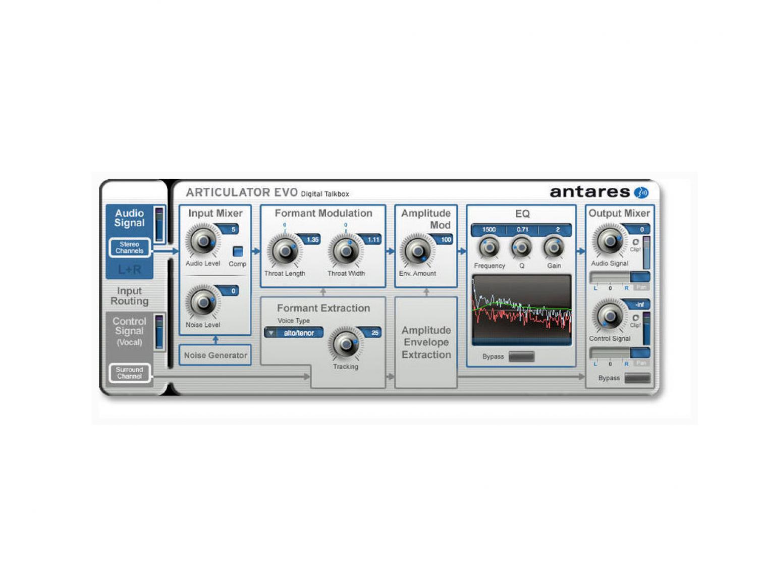 • THROAT Evo Physical Modeling Vocal Designer - Elabora il segnale vocale in ingresso consentendo di applicare un modello fisico complesso dell'apparato vocale umano