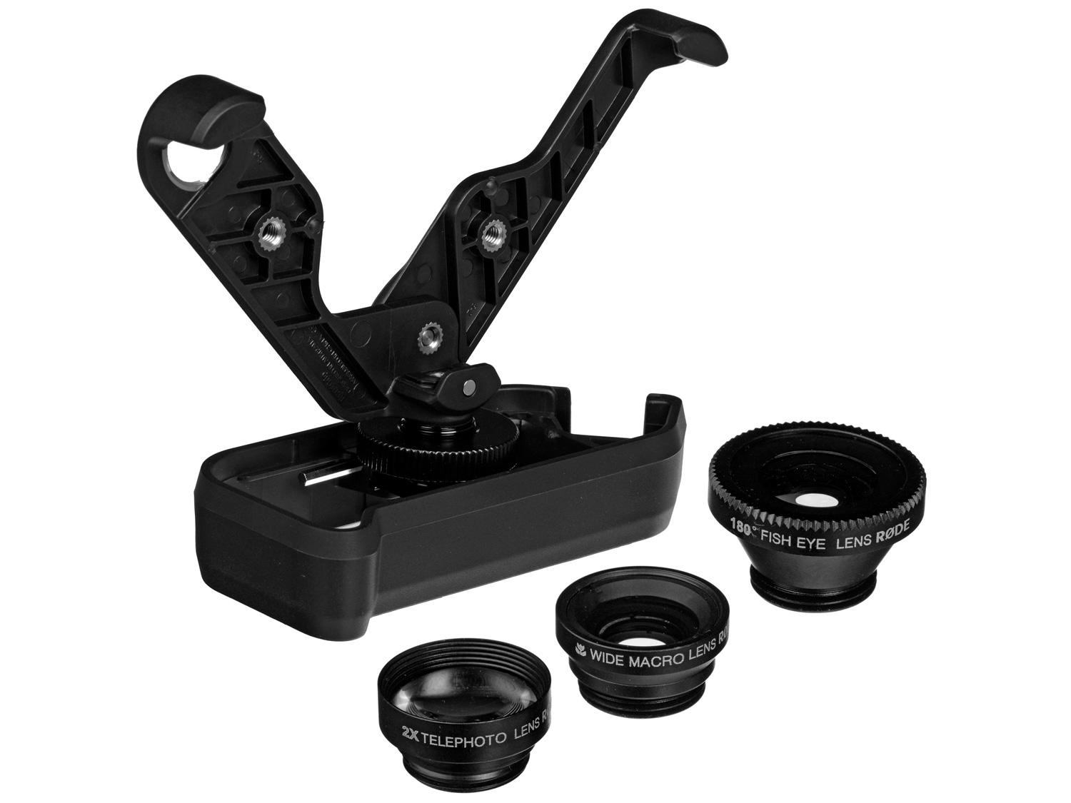 Il RØDEGrip+ è una soluzione multifunzione per il montaggio di iPhone 5 e iPhone 5S dotato di un kit di lenti di alta qualità. Caratterizzato da un attacco con filettatura da 3/8" alla base che può essere montato in tre posizioni diverse, il RØDEGrip Plus può essere utilizzato in una serie di diversi orientamenti e configurazioni.