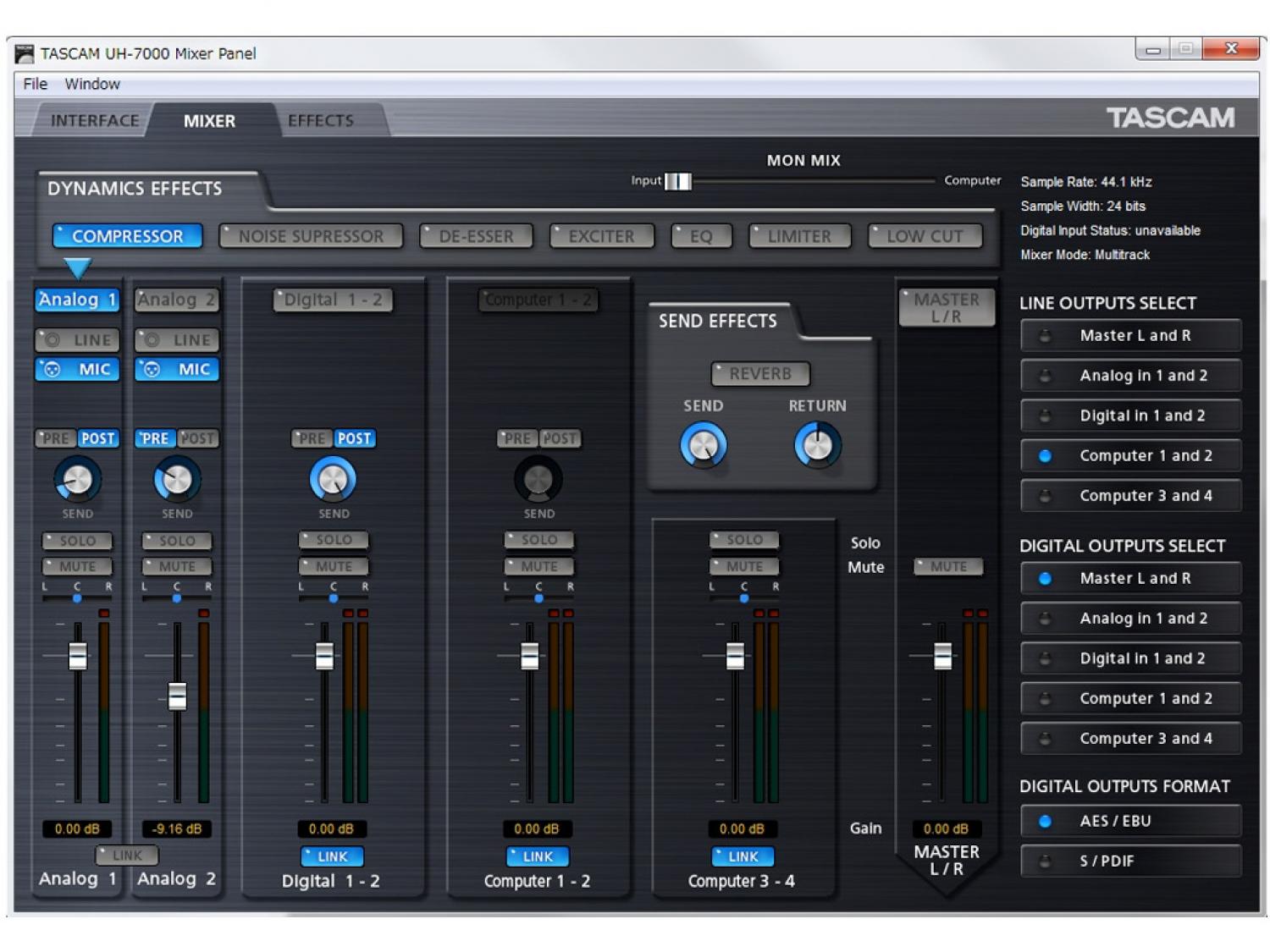• Mixer DSP commutabile tra le modalità multitraccia e mix stereo
