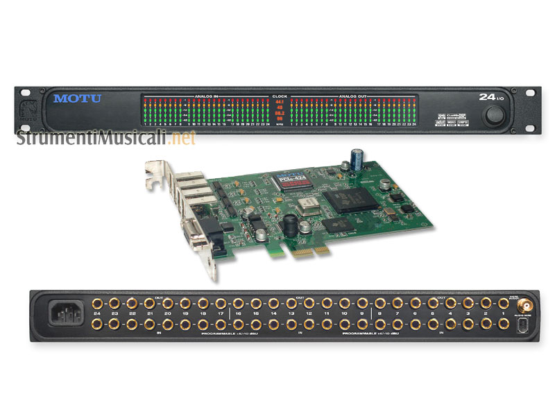 L'interfaccia audio MOTU 24 I/O è stata concepita per supportare un sistema di hard-disk recording: per registrare, editare, mixare e masterizzare un progetto multitraccia all'interno del computer. E' dotata di 24 canali in ingresso e in uscita a 24bit e 96kHz che, sfruttando ottimamente lo spazio di una unità rack, permette di collegare e registrare 24 sorgenti analogiche contemporaneamente.