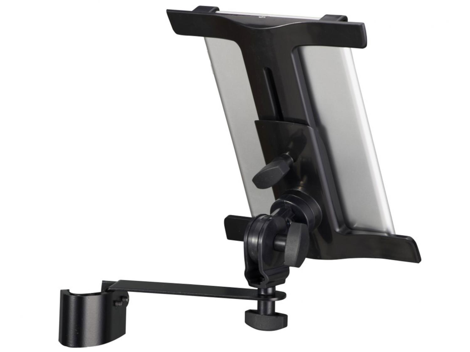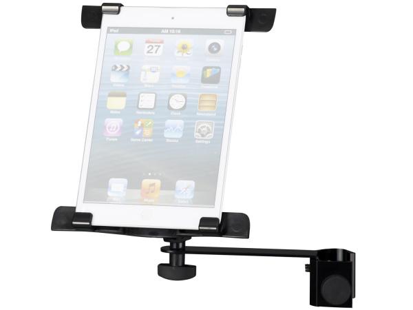 Supporto universale Proel per tablet, realizzato in metallo ed ABS. Il PROIPS03 ha caratteristiche simili al PROIPS02, ma può essere utilizzato solo per montaggio su aste microfonich, e/o altre tipologie di supporto, per mezzo del morsetto agganciabile a tubi dal diametro minimo di 14mm fino ad un massimo di 25mm. Questo supporto offre innumerevoli regolazioni con libertà d'uso e leggibilità ottimali durante le esibizioni live.