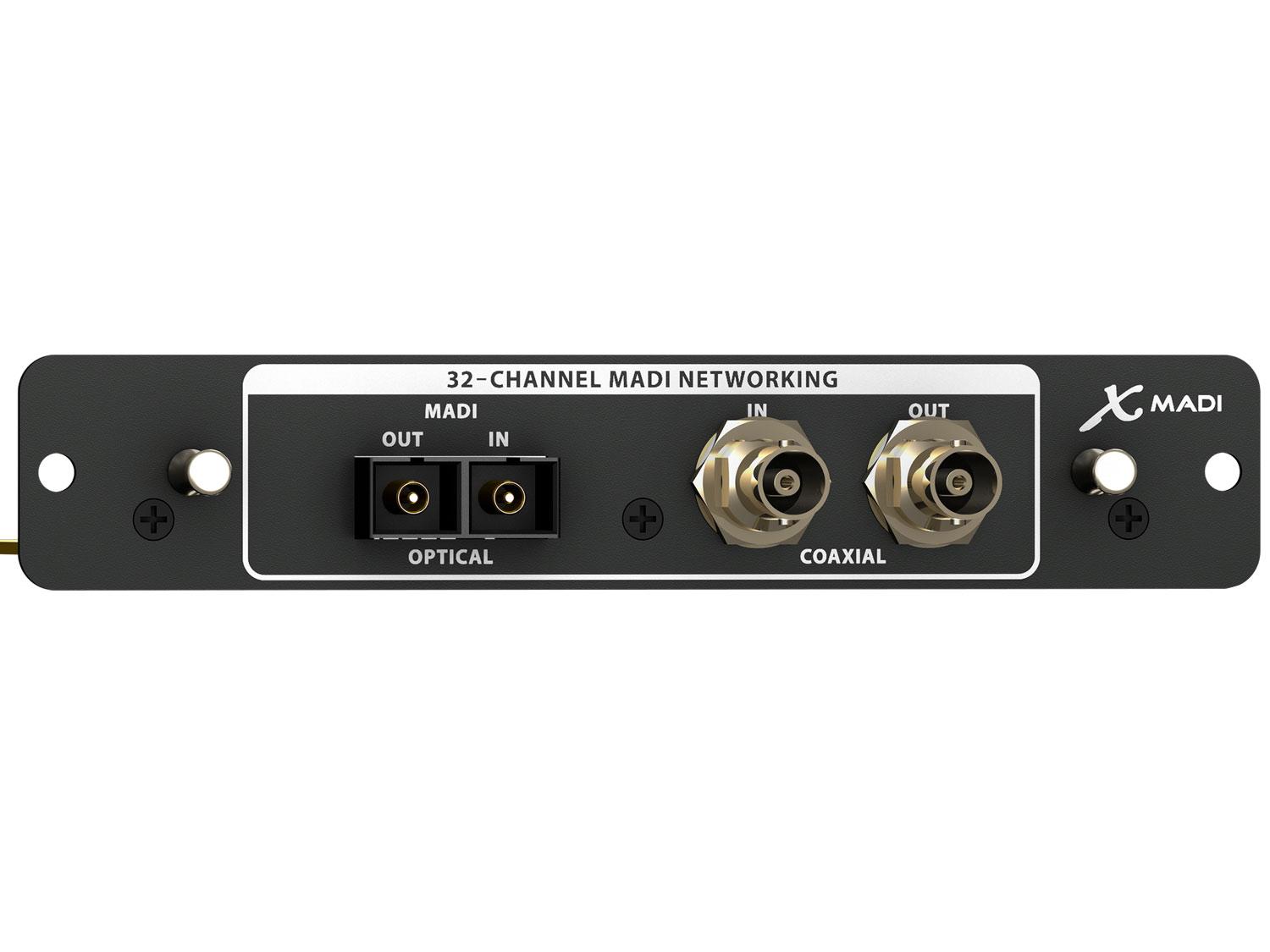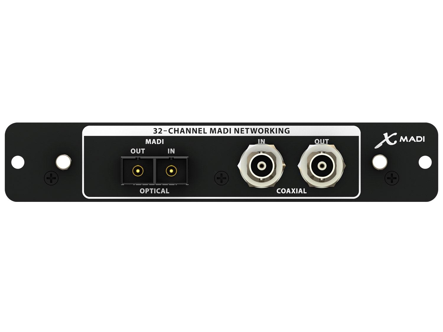 Lo slot di espansione dell'X32 offre una connettività flessibile ed espandibile per molte applicazioni. La scheda di espansione X-MADI può essere facilmente installata al posto della scheda X-USB inclusa con l'X32. L'interfaccia a 32 canali offre da subito ancora più opzioni di I/O per l'X32 abilitandoll subito al networking MADI. Il protocollo MADI o AES10 sta rapidamente diventando uno standard in molte applicazioni broadcast.