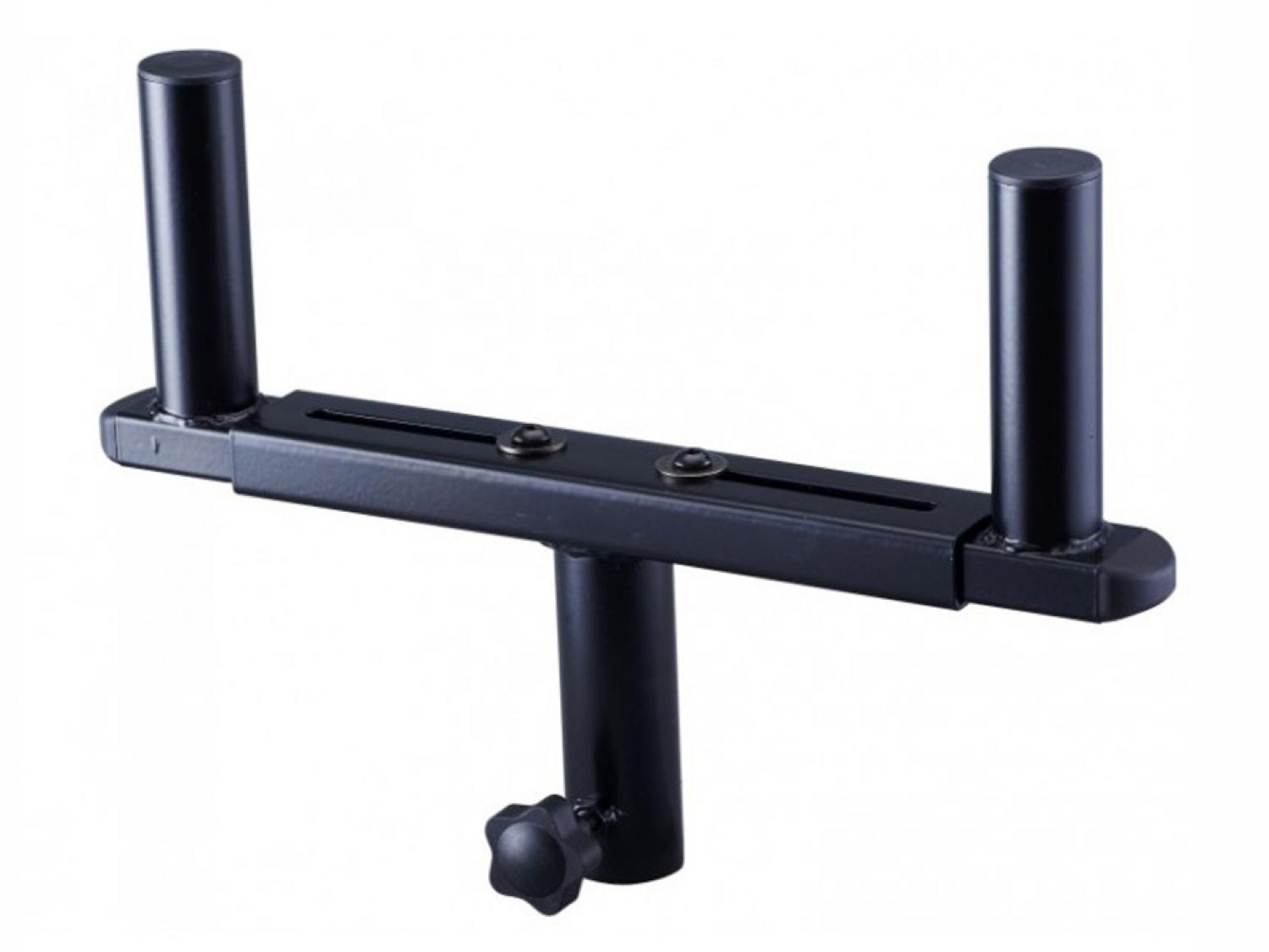 Supporto regolabile da 310 a 490mm (12.20"/19.29") per una coppia di casse acustiche. Realizzato in acciaio tubolare, installabile su qualsiasi stativo con tubo terminale da 35mm. Disponibile in nero opaco.