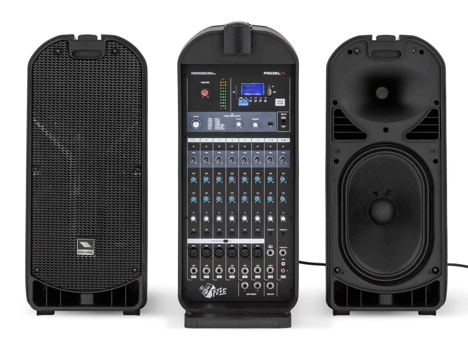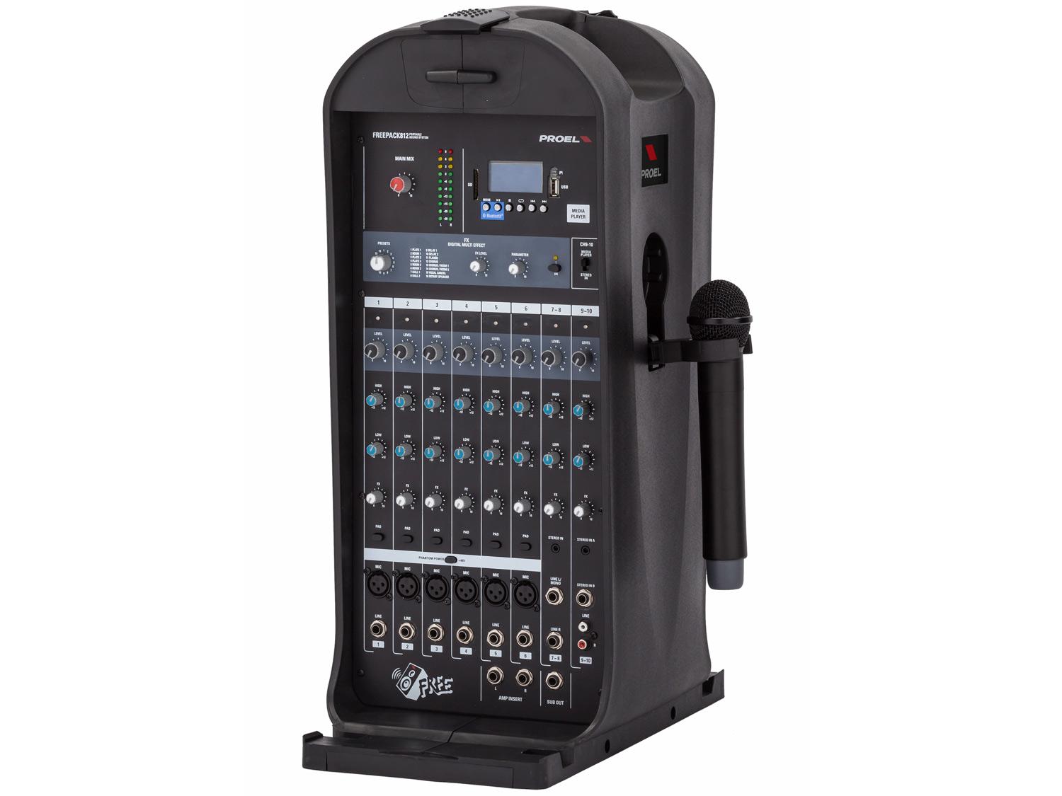 Freepack812 è un sistema audio completo in stile "valigetta" che unisce in un formato estremamente compatto e portabile, tutto ciò di cui il musicista o l'utente necessitano: un mixer completo con effetti digitali e lettore MP3, un potente amplificatore, due diffusori e i cavi di collegamento. Benché di dimensioni compatte, veloce da allestire e facile da utilizzare, Freepack812 offre un set completo di funzioni ed una qualità sonora sorprendente per sistemi audio di questo tipo. Il mixer amplificato con un set completo di funzioni e lettore MP3 con connessione Bluetooth è abbinato ad una coppia di diffusori integrabili con il mixer stesso in un unica valigetta, il che rende semplicissimo il trasporto ed il montaggio. Il mixer include anche un capiente scomparto che può contenere i cavi di connessione ad altri accessori. I due cavi di alta qualità forniti con il sistema sono dotati di robusti connettori a jack in metallo. I diffusori, alloggiati in cabinet leggeri in polipropilene, utilizzano altoparlanti selezionati e filtri crossover accuratamente progettati, in grado di offrire una riproduzione definita e nitida oltre ad una risposta in frequenza estesa e lineare e ad una elevata prezzione sonora. Grazie alla portabilità e versatilità Freepack812 può essere utilizzato in una grande varietà di applicazioni, come esibizioni dal vivo di cantanti o piccoli gruppi, eventi sportivi o didattici e presentazioni di vario genere.