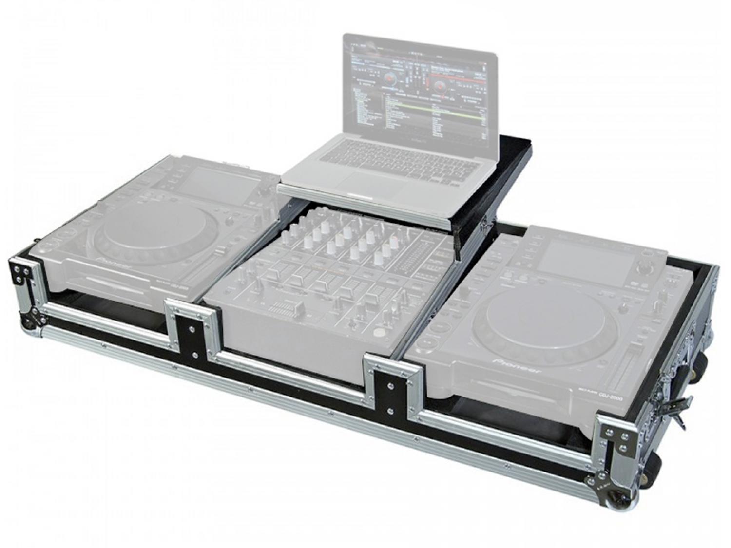 FLIGHT CASE PER 2 CD PLAYER E MIXER CON SUPPORTO LAPTOP E RUOTE