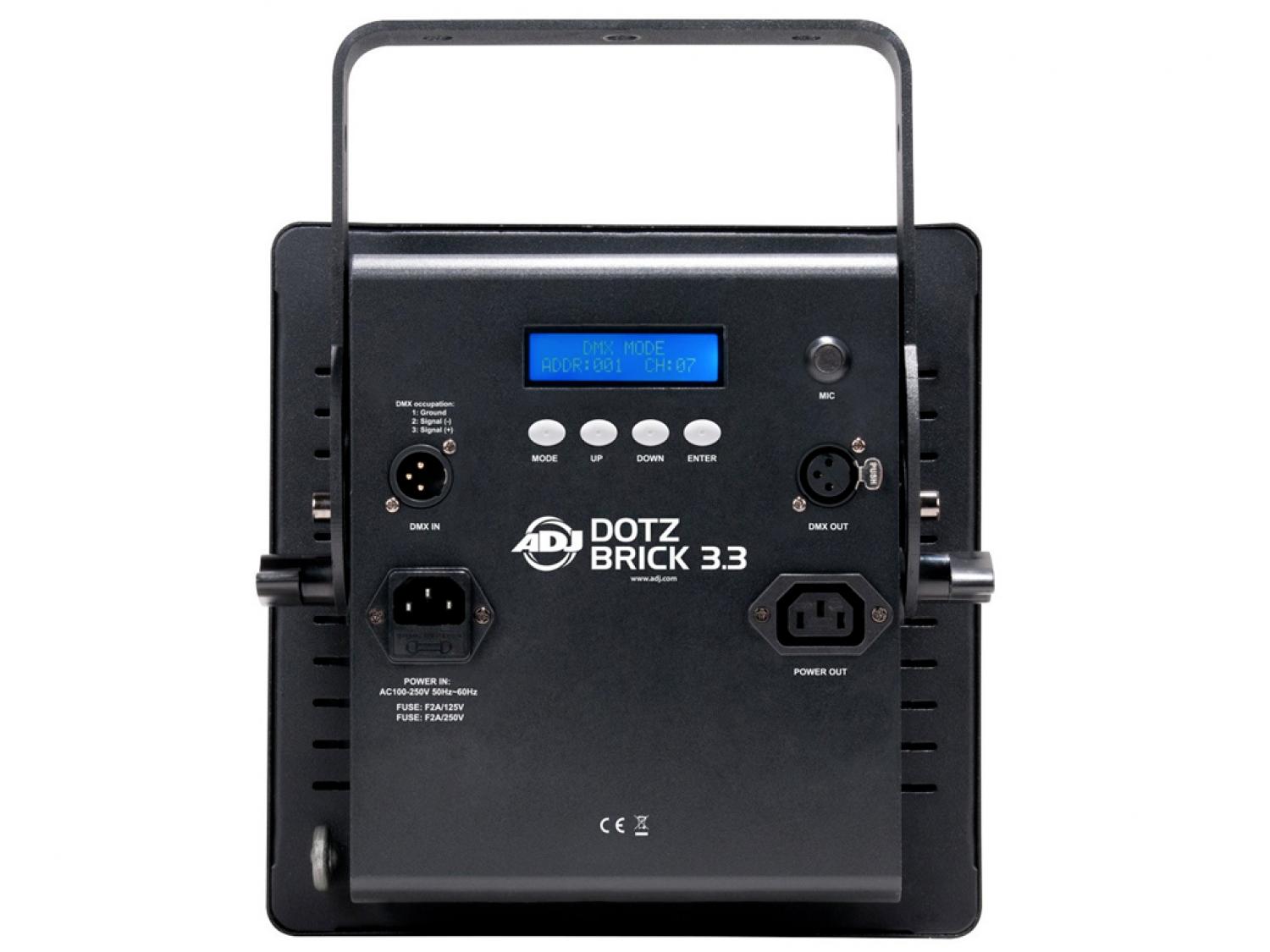 ADJ Dotz BRICK 3.3 è il proiettore Wash/Blinder perfetto per DJ, band e palchi di ridotte dimensioni. La tecnologia LED COB permette l'impiego di potenti LED in uno spazio ridotto e un grande impatto visivo anche senza l'impiego del fumo. Il risultato è una elevata luminosità e un morbido mix colore alimentato da 9 TRI LED COB. La sua capacità di coprire un'ampia superficie a breve distanza, senza ombre RGB, lo rende ideale per palchi e club. ADJ Dotz BRICK 3.3 è dotato di numerose funzioni professionali: dimmer 0-100%, effetto strobo e pulse, show e macro colore preimpostati e display DMX a LCD con menu a 4 pulsanti. Funziona tramite programmi preimpostati, attivazione musicale o via DMX.