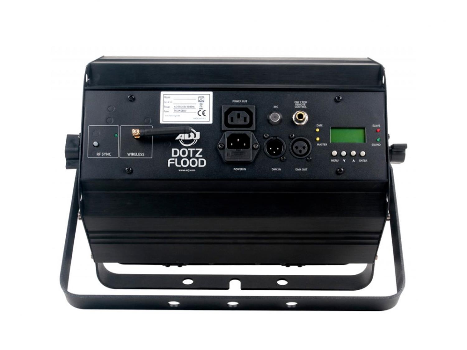 ADJ Dotz Flood è un proiettore Wash/Blinder equipaggiato con l'avanzata tecnologia COB LED che permette l'impiego di LED più potenti in uno spazio minore. Il risultato è un'elevata potenza e una morbida miscelazione colore grazie ai sei TRI COB LED che equipaggiano questo proiettore. Dotz Flood è ideale per l'illuminazione di palchi e club. Dotz Flood viene fornito completo di alette direzionali per variare l'angolo di apertura del raggio (60° max). È inoltre compatibile con il controllo a pedale wireless ADJ DF FC con portata fino a 10m. L'apparecchio è dotato di molte caratteristiche professionali come: dimmer 0-100%, effetto strobo/pulse, giochi e macro colore incorporati e un display con menu a 4 pulsanti. Dotz Flood può essere utilizzato in modalità stand-alone con i programmi preimpostati, in modalità attivazione musicale o via controller DMX. È compatibile con i controller ADJ della serie UC3.