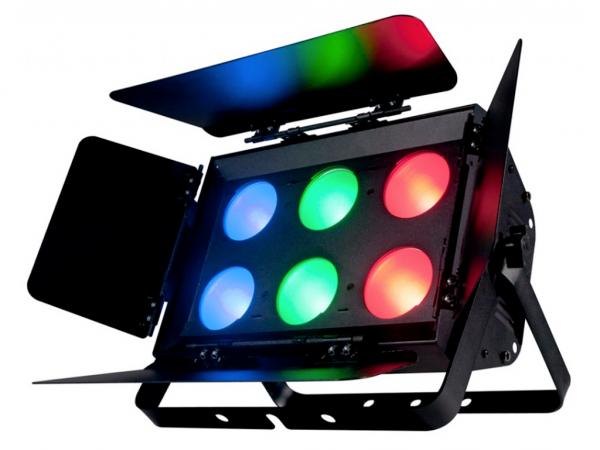 • Wash/Blinder con 6 COB TRI LED (RGB: 3 in 1): pannelli COB LED con matrice 2 x 3