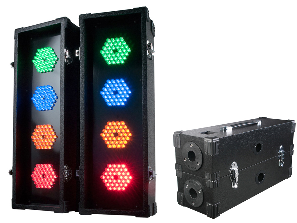 Simile alle "luci psichedeliche" di una volta, Flashback 4 è un set di due banchi con 4 luci LED in un robusto case che si chiude a valigetta. Ideale per l'intrattenimento mobile, i due banchi di Flashback 4 sono equipaggiati con 4 gruppi (1 verde, 1 blu, 1 ambra e 1 rosso) di 36 LED da 10 mm, che si illuminano e pulsano con la musica. Semplicissimo da montare e smontare, Flashback 4 è dotato di 11 programmi incorporati. L'angolo di proiezione è di 45° ed ha un assorbimento di soli 23 Watt. Il case rigido è ideale per trasportarlo e riporlo in sicurezza.