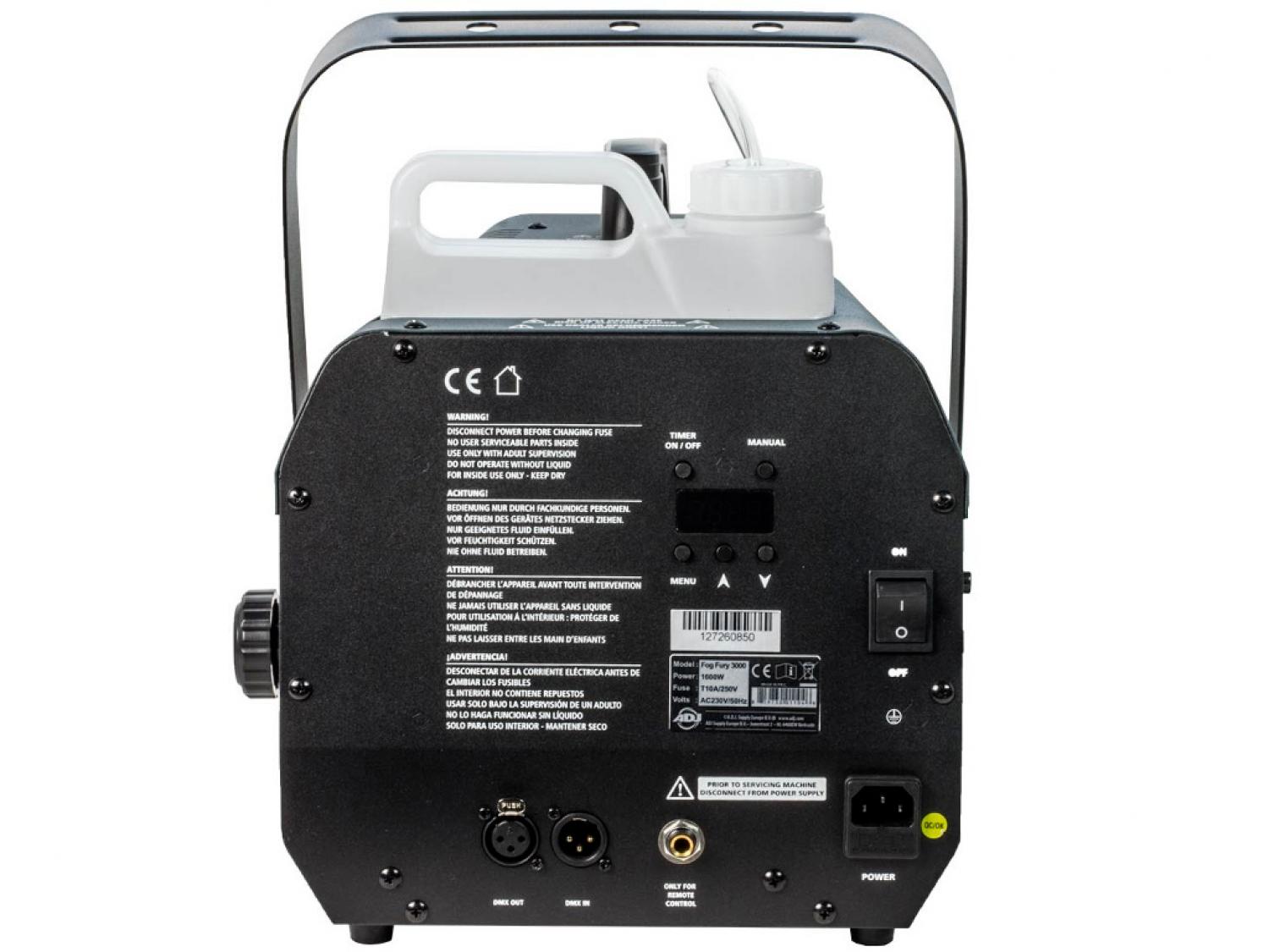 La macchina della nebbia nebbia Fog Fury di ADJ è uno dei modelli di macchine della nebbia più avanzati disponibili sul mercato. Rimarrete stupiti da un dispositivo così facile da usare ed automatico. Aggiungendo l'elemento nebbia ad una pista da ballo si aggiunge visibilità a luci e laser rendendo l'atmosfera estremamente più vivace e dinamica per il vostro pubblico. Con la Fog Fury la vostra pista da ballo o stage avrà la migliore qualità di nebbia, soprattutto se si utilizza il Fog Juice di ADJ. Poichè la Fog Fury 3000 è una macchina DMX, sarete in grado di integrarla facilmente nella vostra strumentazione e di gestirla facilmente con un controller DMX ADJ. Questa macchina della nebbia, con la sua elevata potenza, può riempire di nebbia la vostra intera produzione, ma la scelta non è mai stata più chiara.