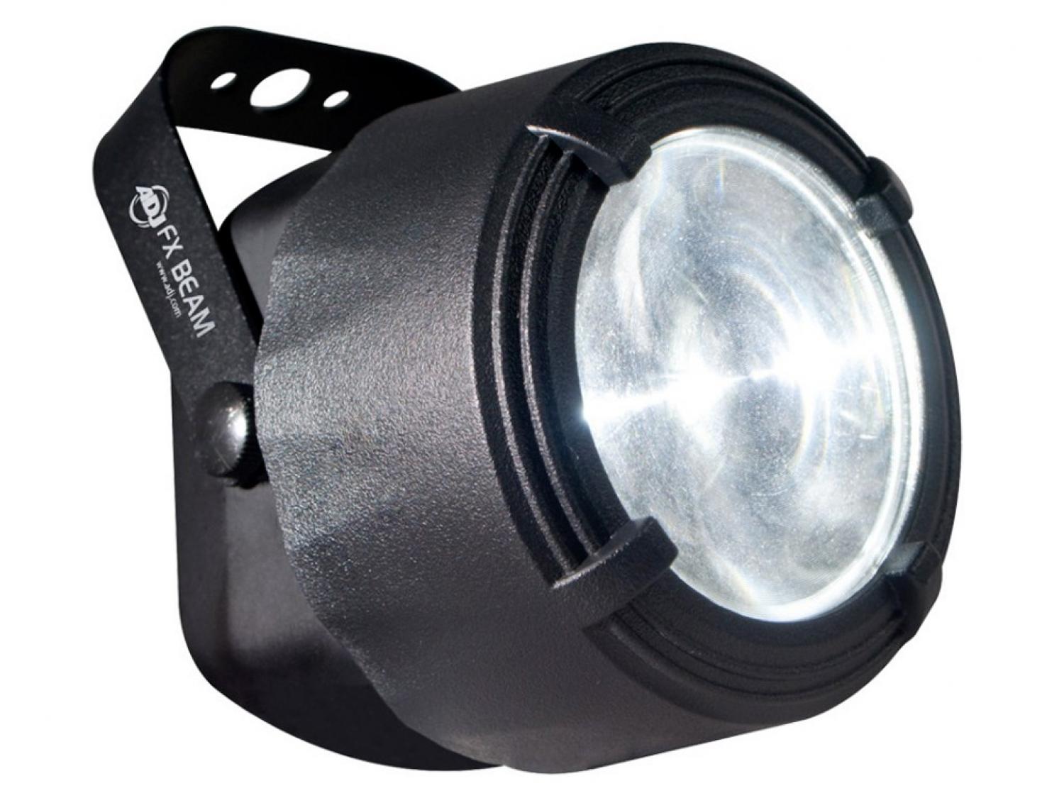 ADJ FX Beam è un faretto micro beam equipaggiato con un luminosissimo LED CREE Bianco da 3W con uno stretto raggio di proiezione (3°) che permette di creare emozionanti giochi di luce quando utilizzato in batteria. FX Beam è ideale per illuminare sfere a specchio, tavoli di feste, vetrine ed esposizioni di negozi e fiere. Può anche essere utilizzato come effeto beam per feste. L'apparecchio è dotato di un selettore FX che permette l'impiego di FX Beam in modalità attivazione musicale o strobo. È possibile regolare la velocità della strobo tramite il potenziometro integrato. FX Beam ha la capacità di essere alimentato in catena per collegare comodamente più unità tramite i connettori IEC In/Out.