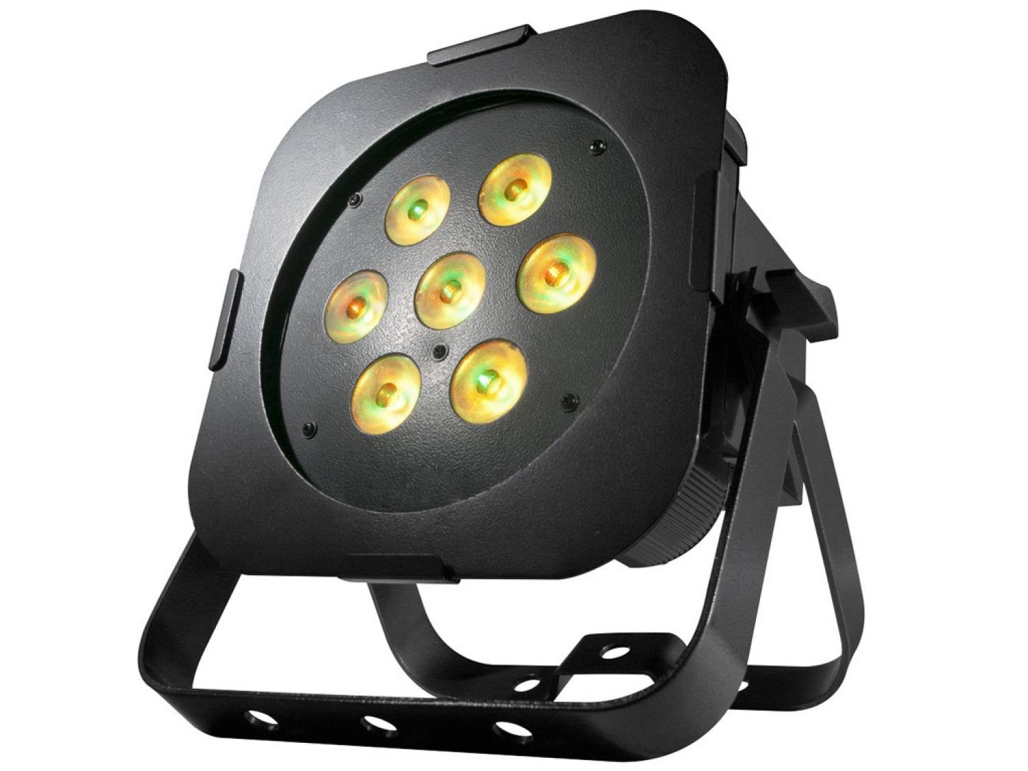 • Flat Par a LED con 7 TRI LED RGB e alimentazione con batteria ricaricabile al Litio