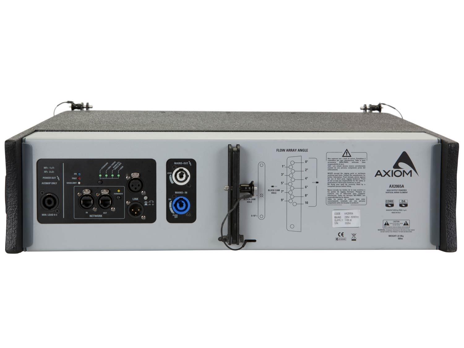 L'AX2065A è un nuovo elemento line array attivo che combina una qualità audio superiore con la semplicità e la flessibilità di un sistema semplice con un rapporto prezzo-prestazioni molto conveniente. L'AX2065A è stato progettato sia per applicazioni live di noleggio che per installazioni fisse, e per un utilizzo più semplice possibile ma senza rinunciare a nulla in termini di qualità di suono e prestazioni. I due woofer 6.5" impiegati nella riproduzione della gamma delle medio-basse sono dotati di coni molto leggeri e sospensione in gomma per estendere la risposta in frequenza. Il peso ridotto del diaframma è inoltre migliorato con l'uso di bobine in alluminio anziché in rame convenzionale. Questo assicura una riproduzione veloce dei passaggi musicali nella fascia media e medio-bassa, migliorando anche la capacità termica della bobina mobile e, di conseguenza, controllando la compressione complessiva della potenza. I due woofer 6.5" sono dotati di una breve linea di trasmissione ibrida che minimizza l'effetto delle risonanze del telaio ed elimina il suono "boxy" delle medio-basse comune dalle normali casse bass-reflex, dando a questo modulo una naturale direttività cardioide della dispersione nelle frequenze basse superiori e medio basse.