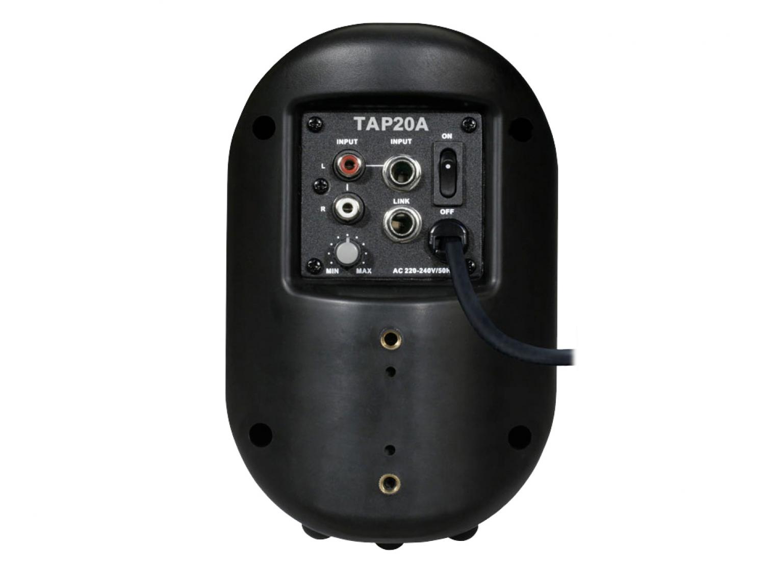 I diffusori TAP20A, 20T, 40A, 40T sono stati progettati per installazione interne ed esterne, ed in sistemi public address. Forniscono performance di qualità e sono disponibile in due modelli alternativi, cioè speaker cabinet con trasformatore e casse attive. Ancora di più, Topp Pro offre una staffa di montaggio ruotabile opzionale in metallo, in tal modo è possibile installare facilmente a muro gli speaker della serie TAP. Questa nuova serie di altoparlanti compatti soddisfa le necessità di ristoranti, super market, centri commerciali, pub etc. Le TAP40T sono dotate di IP44, e possono essere utilizzate in varie applicazioni e situazioni esterne.
