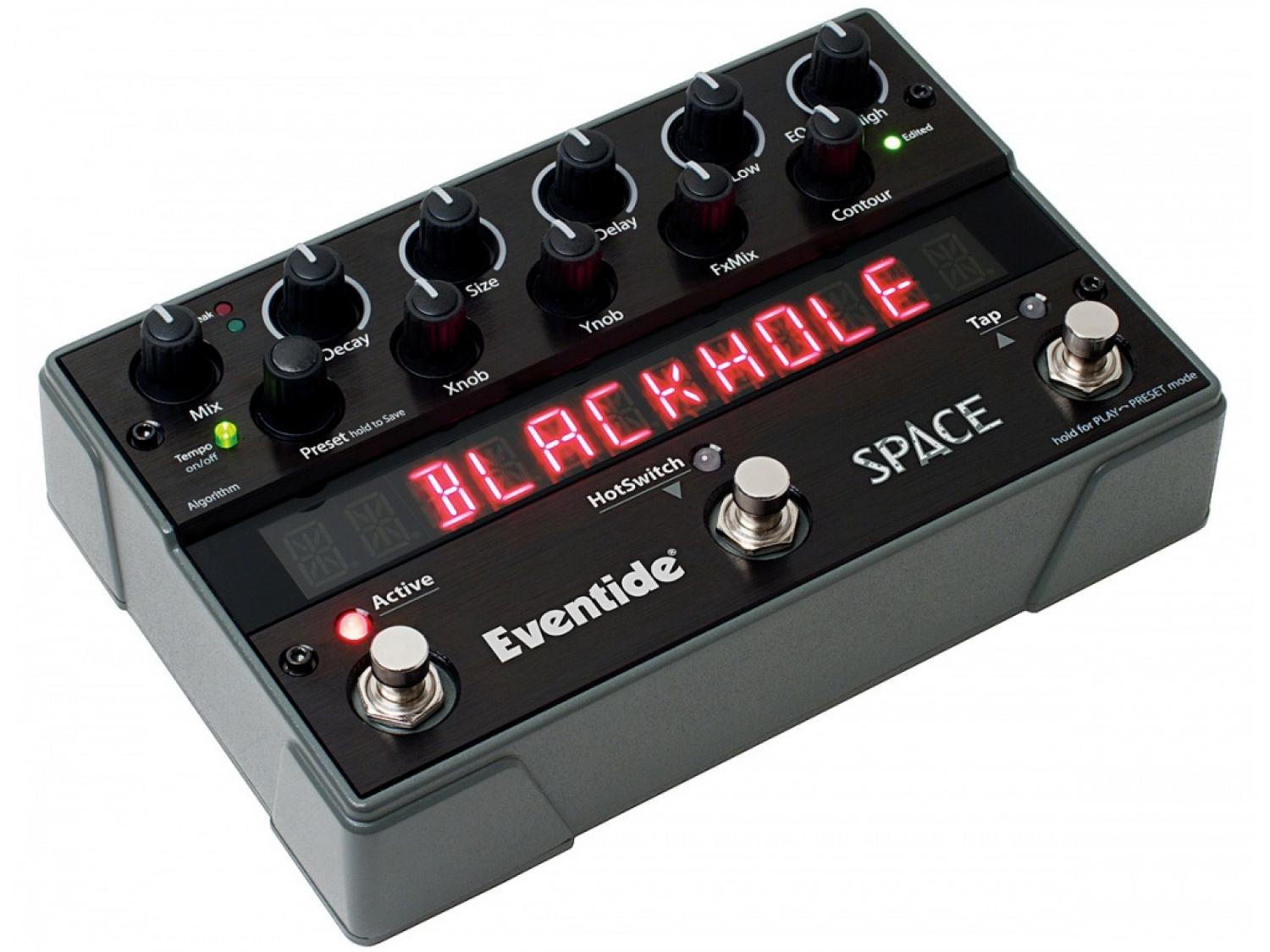Space non è un semplice pedale digitale di riverbero, ma racchiude in sè effetti che prima erano appannaggio esclusivo di potenti unità rack come l'H8000FW e l'Eclipse V4. Racchiude 12 classici algoritmi di riverbero ad altissima qualità firmati Eventide combinati con delay, pitch shifter, tremoli ed effetti speciali. Come gli altri pedali della serie Stompboxes, Space non è pensato per essere usato esclusivamente da chitarristi e bassisti, ma si adatta a elaborare qualsiasi sorgente sonora: strumenti solisti, percussioni, voci e anche mix completi.