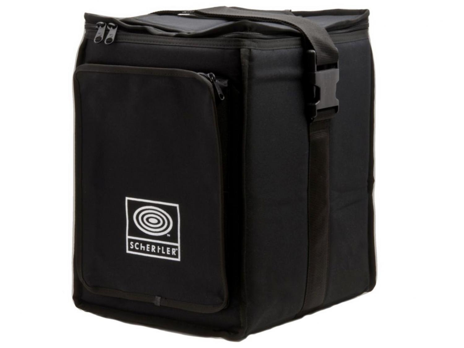 Robusta borsa in Nylon imbottita per il trasporto dell'amplificatore Schertler David dotata di tracolla e di custodia per accessori.