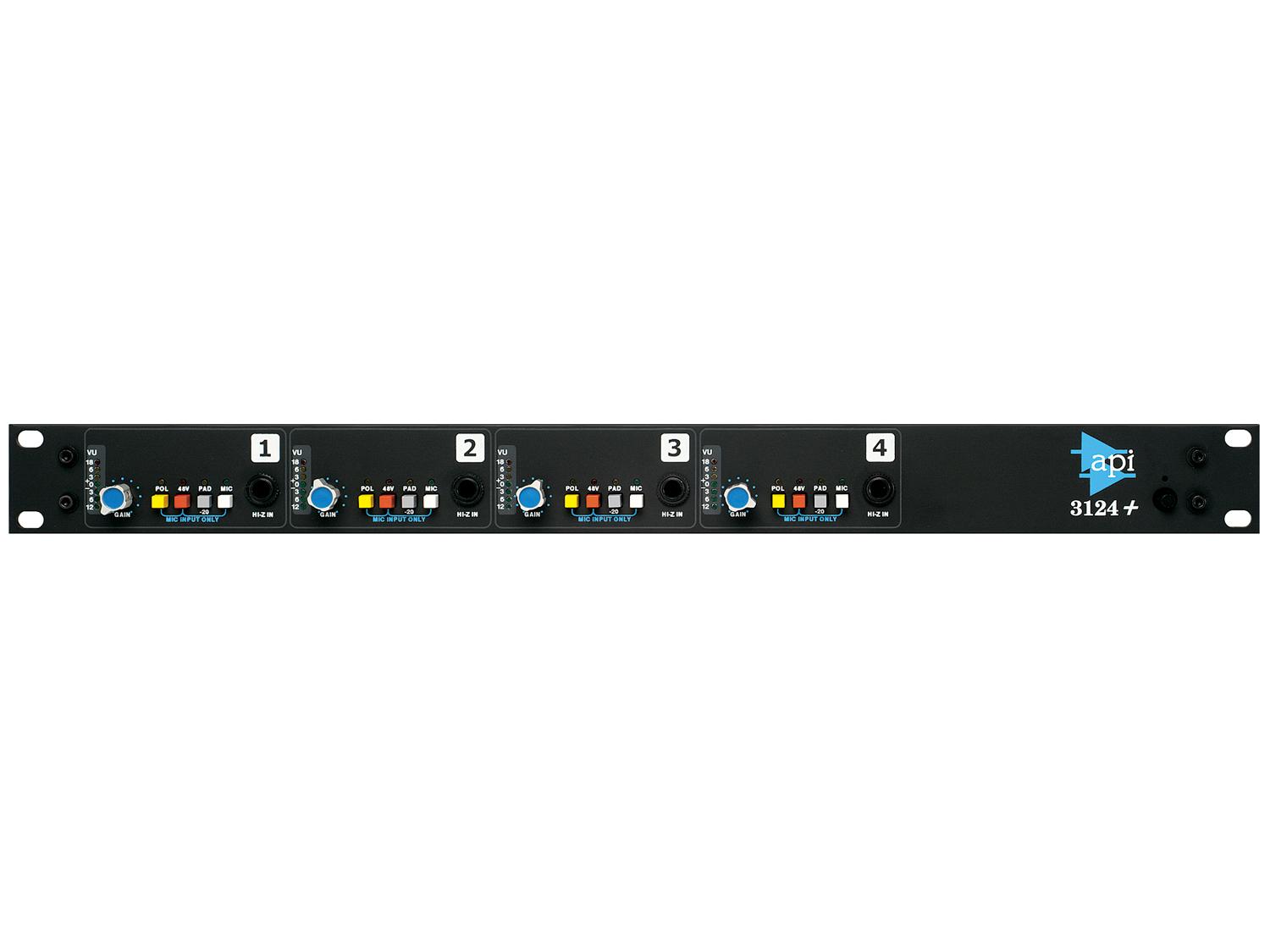 Entrambi i moduli pre 3124 e 3124MB sono stati progettati pensando alle esigenze professionali degli ingegneri del suono, offrendo 4 preamp microfonici ad altissima qualità e, nel caso specifico del 3124M un mixer audio, mantenendo le dimensioni ed il prezzo a livelli contenuti e lasciando il sistema aperto a future possibilità di espansione. E' ad esempio possibile collegare diverse unità mixer 3124M in modo da ampliare il numeri di bus disponibili. Il 3124 ed il 3124M trovano la loro collocazione ideale sia in control room casalinghe, in studio, all'interno di postazioni mobili di recording, sul palco, direttamente connesso al DAT o in qualsivoglia situazione in cui l'artista si senta libero di esprimersi. Le due unità impiegano gli stessi circuiti di preamplificzione microfonica utilizzati all'interno delle console API, l'RE-115K come trasformatore nel mic input e nella sezione di output gli stessi trasformatori degli EQ API. Gli ingressi microfonici dispongono di un'alimentazione interna Phantom 48V selezionabile sul pannello frontale indipendente per ogni canale, entrambi i tipi di ingresso, sia di linea che microfonici, si possono avvalere di un attenuatore di 20dB, anche questo posizionato sul pannello anteriore. Il 3124 e il 3124MB consentono un Gain di 65dB con un livello di clip in uscita di 30dBm. Gli ingressi Hi-Z sul pannello anteriore manda il segnale direttamente nell'op-amp in modo da consentire ad uno strumento a basso livello di input di essere amplificato senza l'ausilio di direct box; l'ingresso Hi-Z può inoltre sopportare segnali in ingresso fino a 22dB, è quindi ideale per ricevere direttamente da tastiere o da altri dispositivi ad alto livello di uscita. Le uscite sul retro impiegano connettori XLR. La differenza sostanziale tra i due outboard consiste nel fatto che il 3124MB integra completamente il 3124 e vi aggiunge all'interno un completo mixer stereofonico. Inoltre, in congiunzione al controllo del gain del 3124 , il 3124MB aggiunge un panner stereo con controllo del volume e una mandata ausiliaria post fader. I panner stereo e le mandate ausiliarie sono portate al controllo di master output e poi successivamente ai jack sul pannello posteriore. E' inoltre presente un ritorno per la mandata ausiliaria per permettere il collegamento a moduli effetti o per collegare in cascata altri mixer in modo da aggiungere ulteriori canali di input e può essere utilizzato come ritorno monofonico. Tra le diverse opzioni della versione "M" troviamo inoltre un'uscita stereo bilanciata od in alternativa sbilanciata.