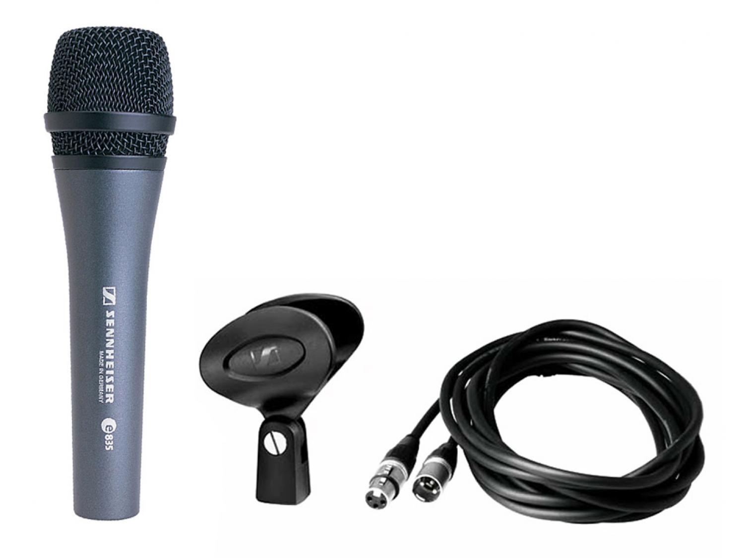 • Il kit comprende 1 microfono Sennheiser e835, 1 cavo XLR 4 metri, un supporto per asta