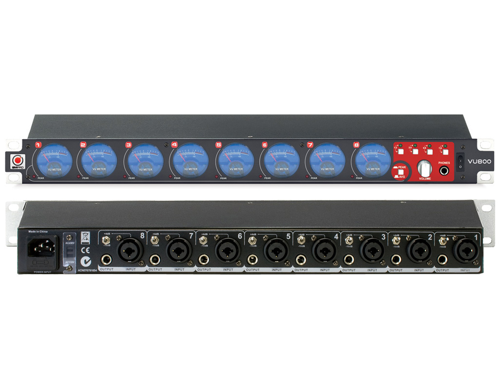Il VU800 è un misuratore VU passivo multicanale ed un sistema di monitoraggio per cuffie progettato come indicatore del livello audio multiuso. Sia per l'uso in broadcast, studio, live, o per qualsiasi altra situazione di produzione audio, il VU800 dà una misurazione visiva multi-canale semplice e immediata. I gruppi misuratori sono completamente passivi e consentono una configurazione di misurazione 'Peak' o 'Avarage'. Questo non solo assicura che i segnali rimangano puliti e inalterati da qualsiasi possibile interferenza, ma che i livelli di segnale possano essere rappresentati visivamente proprio come previsto. Una comoda uscita monitor per cuffie consente un pratico controllo immediato di uno degli 8 canali disponibili.