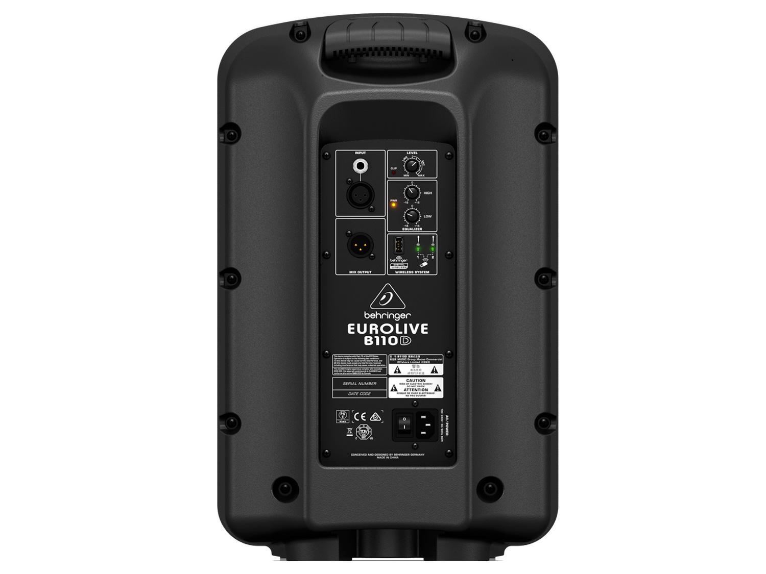 L'Eurolive B110D è un diffusore super-compatto a 2 vie, 300-Watt con l'opzione wireless, ideale per musica dal vivo, PA portatili, etc. Questo diffusore incredibilmente versatile attivo è leggerissimo grazie alla tecnologia di amplificazione in Classe D. E' Wireless-ready per l'utilizzo con i microfoni wireless ULM digitali Behringer. Una comoda uscita linea consente di collegare più altoparlanti B110D, o altri diffusori attivi. Il Soun Reinforcement non è mai stato così facile.