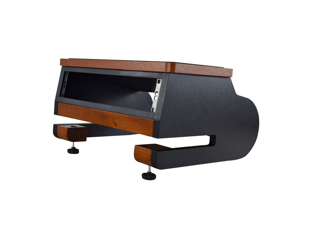 Uno spazio rack "slide-on & tighten" che si aggancia alla tua scrivania ed utilizza solo una frazione dello spazio che occupa un normale rack. Dispone di 2 spazi rack più un superficie superiore imbottita per le tue casse, un monitor, etc.