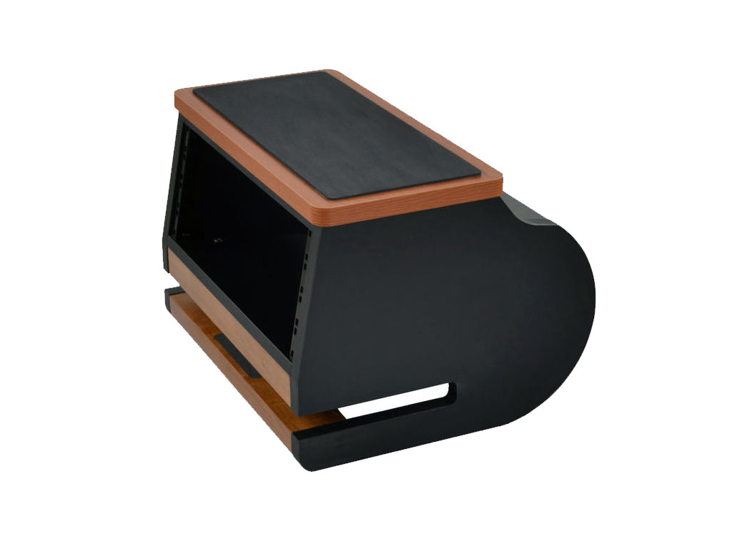 Uno spazio rack "slide-on & tighten" che si aggancia alla tua scrivania ed utilizza solo una frazione dello spazio che occupa un normale rack. Dispone di 4 spazi rack più un superficie superiore imbottita per le tue casse, un monitor, etc.