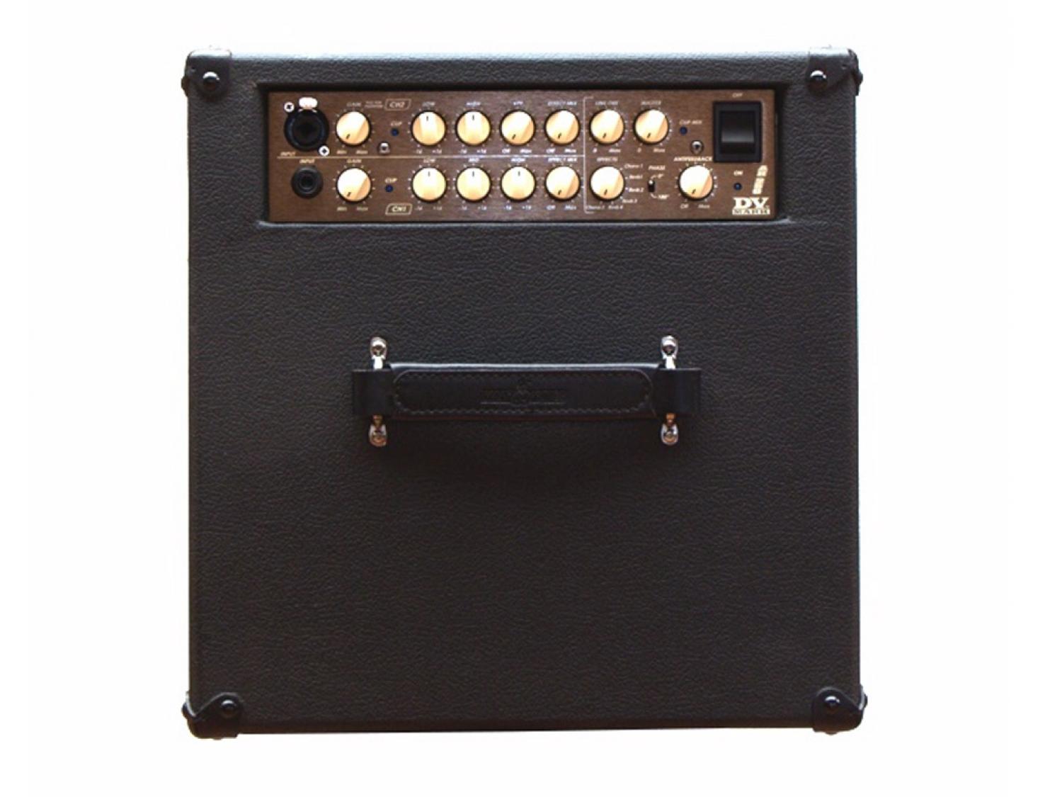 Il DV AC101 (versione aggiornata del Markacoustic AC101) è un combo compatto e potente progettato per tutti gli strumenti acustici, inclusi chitarra acustica, chitarra classica, chitarre archtop, bassi acustici, mandolino, violino, violoncello, banjo, etc. I due canali (uno di cui accetta un ingresso microfonico) permettono di usare due pickup, due strumenti, o uno strumento ed un microfono. E' inclusa l'alimentazione Phantom a 48V, controllo del feedback ed inversione di fase, un nuovo driver a compressione hi-Performance, pre / post switch EQ per XLR DI, FX send / return, uscita accordatore, un riverbero digitale ed un chorus di nuova generazione per un suono caldo e naturale.
