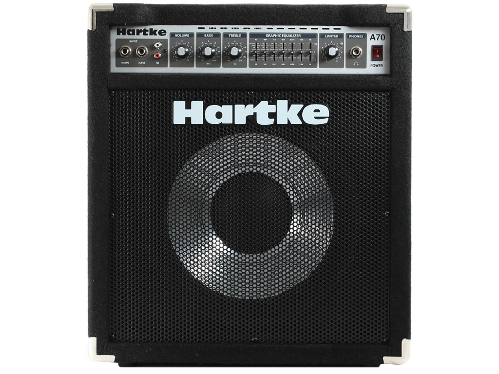 L'Hartke A70 è un combo per basso completo che offre un cono 12" in Alluminio abbinato ad un cabinet appositamente progettato, che può essere utilizzato nella tipica posizione piana o reclinato per una maggiore chiarezza delle alte frequenze e della dispersione del suono. Con caratteristiche professionali come controlli del tono Bass, Treble ed un EQ grafico a 7 bande, i circuiti bipolari ed Effect loop send e return, l'A70 è completo e versatile. Fornisce 70 Watt di potenza al suo driver, ed è ideale per piccoli locali e studi di registrazione casalinghi. Inoltre, il suo ingresso CD/MP3 dedicato e l'uscita cuffie lo rende un amplificatore eccezionale per esercitarsi.
