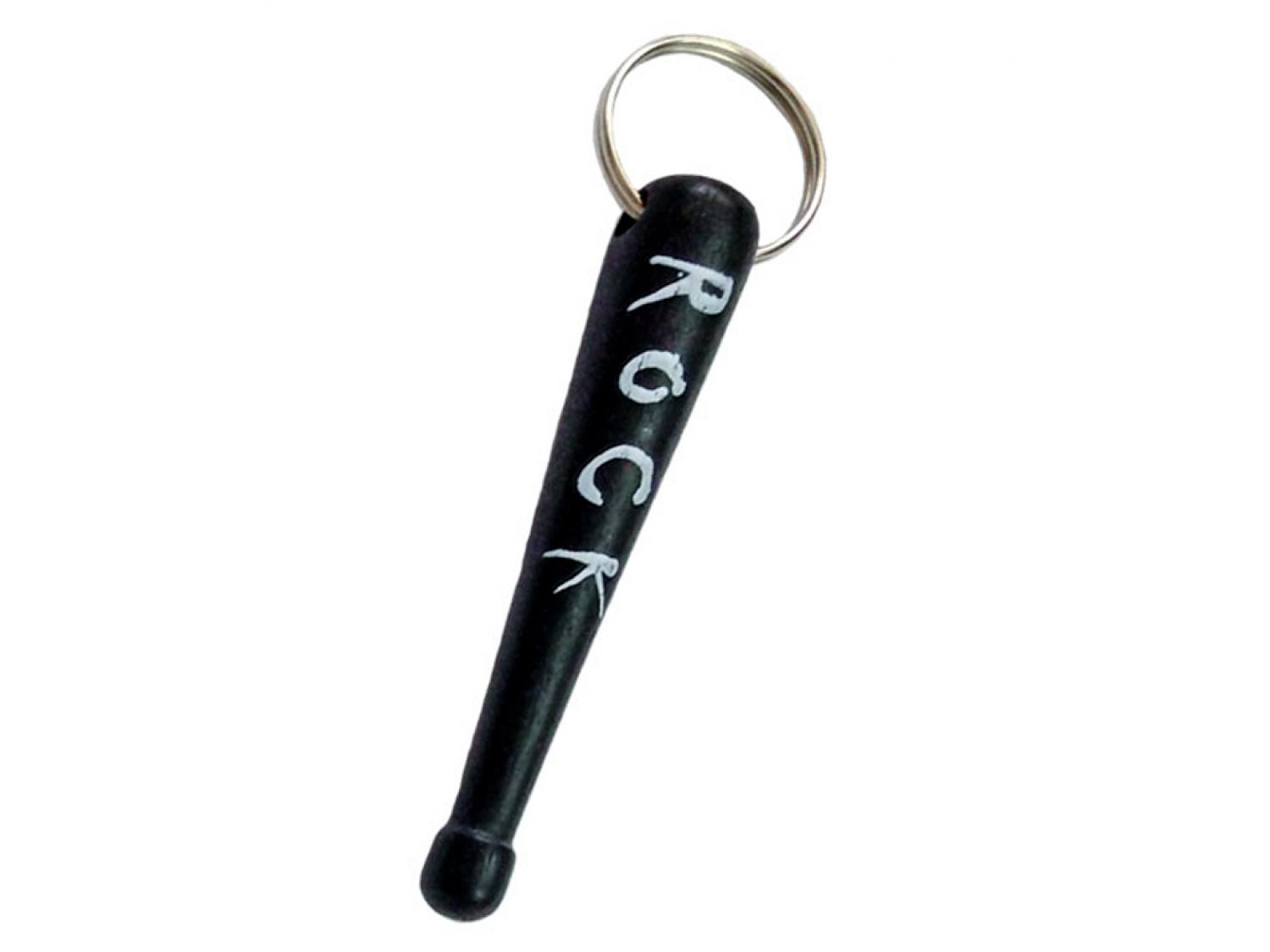 Portachiavi bacchetta in legno nero con scritta "Rock".