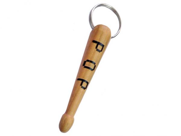 Portachiavi bacchetta in legno naturale con scritta "Pop".