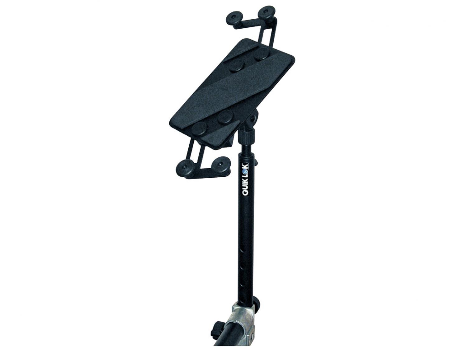 Supporto universale dal design pratico e sicuro che permette al musicista di integrare il suo tablet con il supporto per tastiere su palco o in studio, in sala prove o in casa. Si adatta alla maggior parte dei tablet in commercio. I due stopper in plastica ricoperti in gomma bloccano saldamente il tablet senza interferire con connessioni, altoparlanti, uscita cuffie, interruttore di accensione e la regolazione del volume.