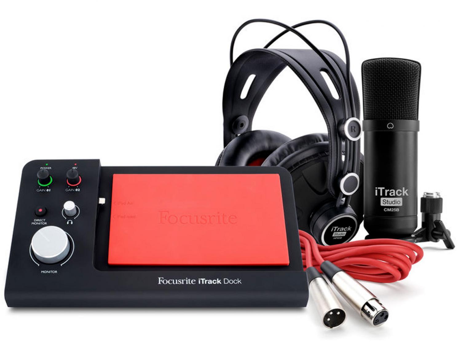 iTrack Dock Studio Pack contiene tutto il necessario per collegare i tuoi strumenti e registrare facilmente con il leggendario suono Focusrite su qualsiasi iPad compatibile con Lighting. Per avviare la registrazione su iPad con eccezionale qualità audio a 24 bit e frequenze di campionamento fino a 96 kHz, è sufficiente agganciare il tuo iPad, collegare microfono e cuffie, collegare i tuoi strumenti e premere il pulsante Record. Gli anelli attorno alle manopole del Gain cambiano colore da verde a rosso se il livello è troppo forte, mentre l'ingresso strumento ad elevato headroom consente di ottenere ogni volta una registrazione pulita. Il microfono a condensatore a diaframma largo è l'ideale per la registrazione di voci ed è fornito di cavo XLR e clip per asta microfonica. Le cuffie chiuse professionali sono progettate specificamente per registrare e mixare le tue performance. Bloccano qualsiasi rumore esterno permettendoti di concentrarti sulla musica. È possibile anche scaricare l'app di registrazione gratuita per iPad, Focusrite Tape. iTrack Dock funziona con qualsiasi applicazione di registrazione, ma pensiamo che quella Focusrite sia di gran lunga la più semplice e versatile. Include un'interfaccia audio iTrack Dock iPad, un microfono a condensatore CM25 con diaframma largo e clip di supporto, cuffie chiuse professionali HP60 e cavo XLR da 3 metri. Tutto ciò che serve è un'asta per il microfono ed il tuo iPad.