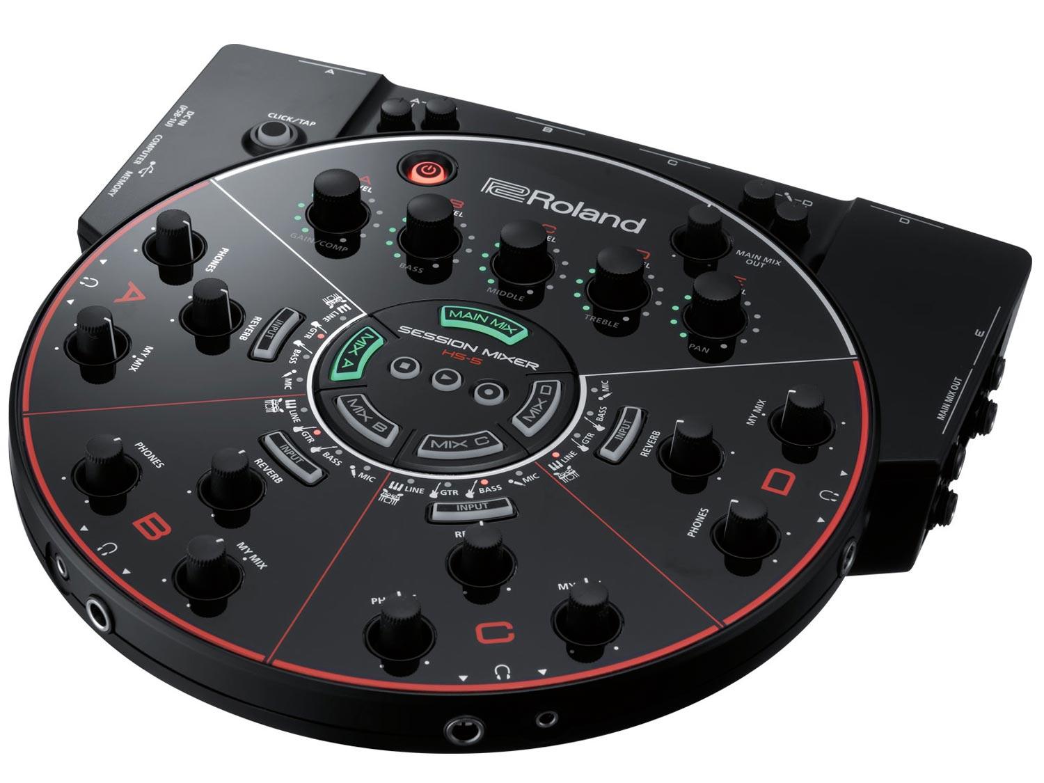 HS-5 è un mixer digitale che permette a 5 musicisti di provare e suonare insieme, tutto in cuffia! Ogni musicista potrà regolare i volumi del proprio ascolto. Ci sono anche effetti COSM per chitarra, basso e voce, incluse le simulazioni di amplificatore per chitarra e basso e riverbero per la voce. Potrete addirittura registrare la vostra performance, e collegandovi al comuputer potrete registrare in multitraccia. Infine, potrete salvare le impostazioni personalizzate per ogni musicista.