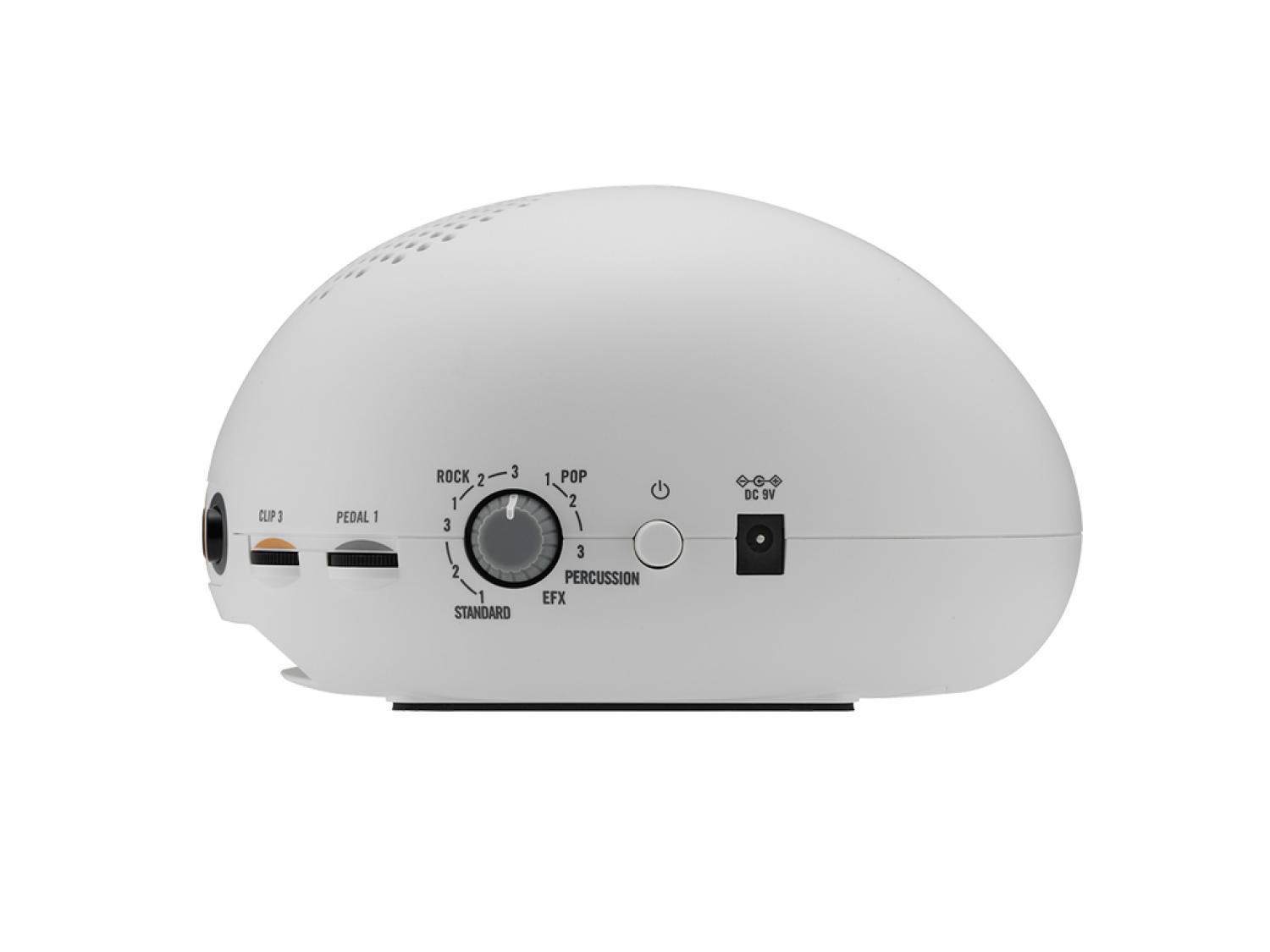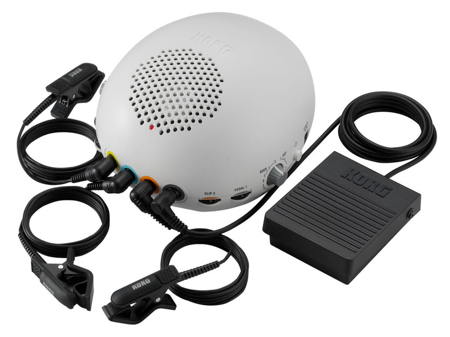 Korg CLIPHIT è uno strumento perfetto per percussionisti e batteristi che si vogliono allenare comodamente in qualsiasi situazione, o per chi si vuole semplicemente divertire. Si tratta di un modulo sonoro alimentabile da 4 batterie di tipo AA (circa 6 ore di autonomia), con 11 kit di batteria che coprono differenti generi musicali, al quale potrai collegare tre trigger clip e due pedali. In dotazione troverai 3 clip, ossia delle mollette la cui superficie contiene un microfono a contatto ed un pedale di tipo switch. Applicando le clip a qualsiasi superficie, ad un tavolo, al collo di una bottiglia, una sedia, un giornale, etc. trasformerai la superficie in uno strumento percussivo che controllerà la wavetable sonora integrata nel Korg Cliphit. Potrai fissare la clip anche ad un pad da allenamento standard ed usarlo quindi come fosse un tamburo o un piatto sonorizzato dal Cliphit. I suoni integrati nel modulo risponderanno alle variazioni dinamiche dei colpi sulle superfici. Potrai regolare il volume di ciascun suono controllato dalle clip e/o dal pedale, nonché intervenire sul master. Il prodotto è dotato di un altoparlante integrato da 3" con una potenza da 2W, che grazie al design particolare dello chassis che funge da bass-reflex fornisce un suono accettabile per le performance casalinghe. Gli undici kit comprendono suoni di cassa, tom, rullante, piatti (hi-hat, crash, ride). Aggiungendo un secondo pedale di tipo switch (non incluso) potrai suonare fino a 5 differenti suoni in contemporanea, 3 a mezzo dei clip e due dai pedali, riuscendo quindi anche ad emulare il doppio pedale della cassa, o l'apertura e la chiusura del charleston. Presenti anche suoni di conga, tamburello, clap ed effetti sonori, inclusi versi di animali per far divertire i più piccoli o per aggiungere quel pizzico di spensieratezza alle tue serate in relax. Anche il CLIPHIT stesso funge da percussione, colpendolo riprodurrai infatti il rullante o altro suono assegnato al CLIP 2 ( funziona solo quando non ci sono clip collegati all'ingresso Clip 2). Korg CLIPHIT offre un ingresso minjack stereo con relativo potenziometro per la regolazione del volume al quale potrai collegare una sorgente audio esterna, come un lettore CD o MP3, ad esempio, dal quale potrai riprodurre una base sulla quale allenarti.