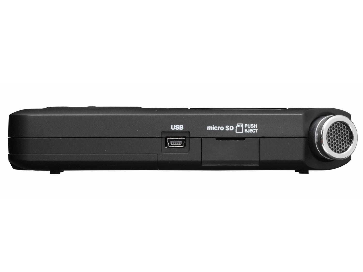 Il DR-05 è un registratore stereo in alta qualità che può catturare audio in MP3 o WAV fino ad una risoluzione di 96kHz/24-bit, su scheda di memoria microSD o microSDHC. Una coppia di microfoni completamente nuovi gestisce SPL fino a 125dB con la sensibilità che serve per riprendere ogni dettaglio. Con le nuove funzioni di registrazione come il Peak Reduction e Quick Menu, il DR-05 mette la qualità di registrazione di un album nel palmo delle tue mani. L'ammodernamento hardware permette di registrare sorgenti sonore con alta pressione acustica, fino a 125dB SPL pur mantenendo un'alta sensibilità anche a volumi bassi. La funzione di peak reduction inclusa aiuta poi ad ottimizzare automaticamente i volumi troppo alti. I microfoni integrati sono inclinati a +60° e -60° rispetto all'asse verticale, per una ripresa stereo ampia. Si può registrare anche grazie all'entrata di linea diretta con input da 1/8". La circuiteria analogica e digitale sono su schede separate, per diminuire il rumore interno e le interferenze, e anche i convertitori A/D e D/A sono alimentati separatamente per prestazioni migliori con un rapporto segnale/rumore di oltre 92dB e una distorsione armonica inferiore allo 0,05% con risposta in frequenza da 20Hz a 40kHz.
