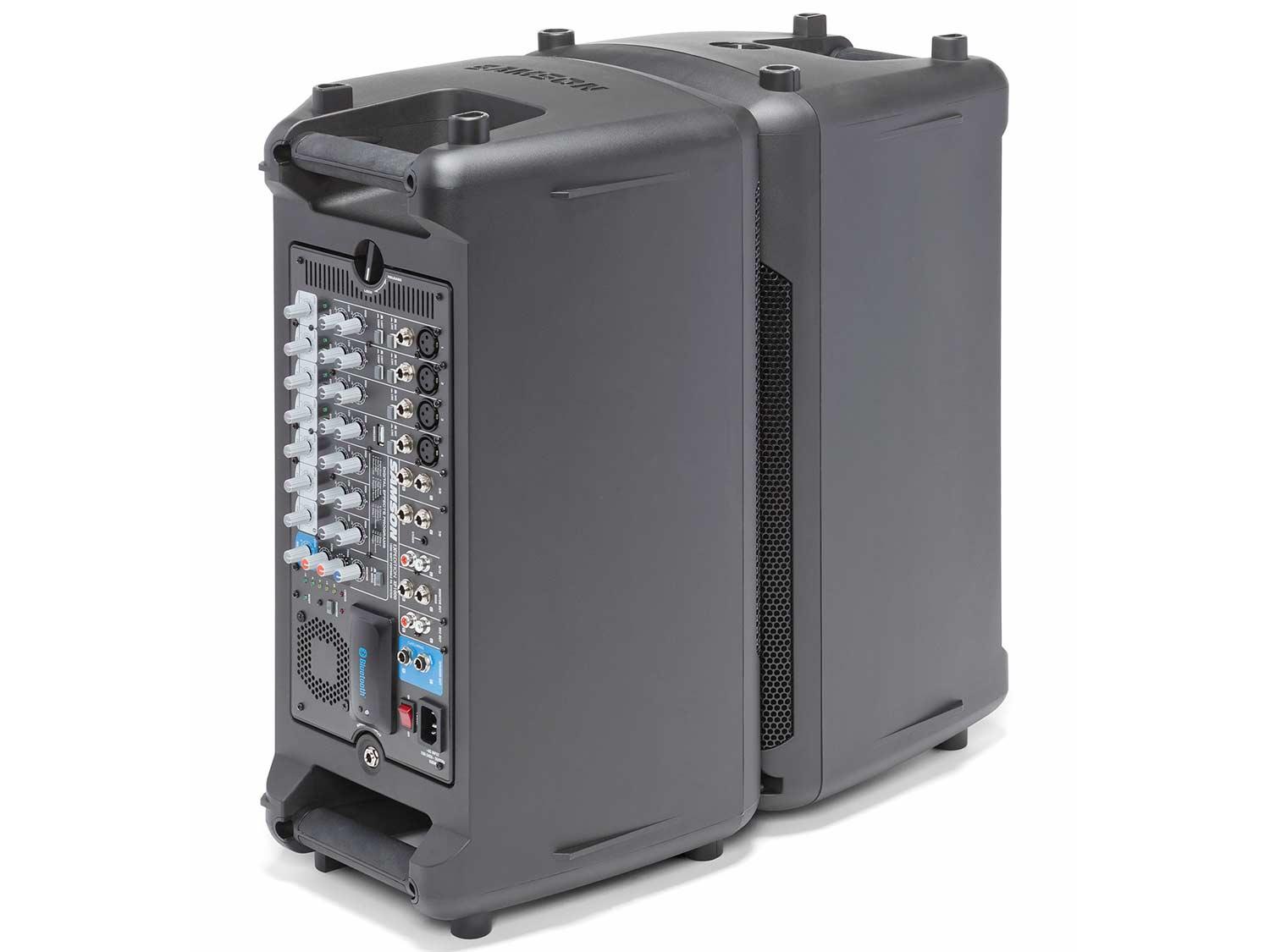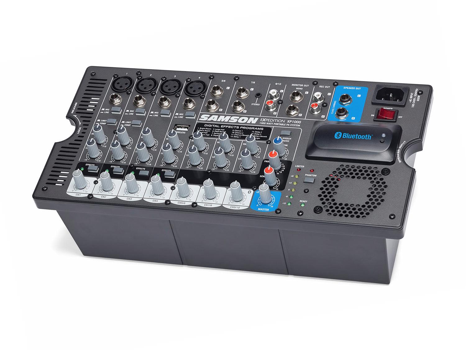 L'XP1000 è Bluetooth-enabled, cioè consente di eseguire lo streaming wireless della musica dal tuo smartphone, tablet o laptop. Un mixer a 10 canali rimovibile con impressionante amplificatore da 1000 Watt (2x 500W), leggero, in Classe D alimenta il XP1000. Il mixer dispone di quattro canali di ingresso Mic / Line, ognuno con ingressi XLR e 1/4" per il collegamento di microfoni o strumenti a di linea attivi. Comprende anche tre canali di ingresso stereo per il collegamento di dispositivi esterni come lettori MP3, tastiere ed altro ancora. Ogni canale dispone di Bass e Treble, i primi due canali Mic / Line hanno un compressore selezionabile per uniformare i livelli evitando sovraccarichi e distorsione. L'XP1000 ha anche una porta wireless USB da utilizzare con il sistema wireless digitale Samson XPD1 USB (venduto separatamente). per un controllo preciso sul suono, l'XP1000 offre 16 preset di effetti DSP di alta qualità, perfettamente adatti per la voce. Per le applicazioni di grandi dimensioni, l'XP1000 fornisce uscite monitor stereo con controllo del livello per utilizzare il sistema con altoparlanti aggiuntivi. Inoltre, il mixer ha uno switch per l'alimentazione Phantom per consentire l'integrazione di microfoni a condensatore nel vostro setup.