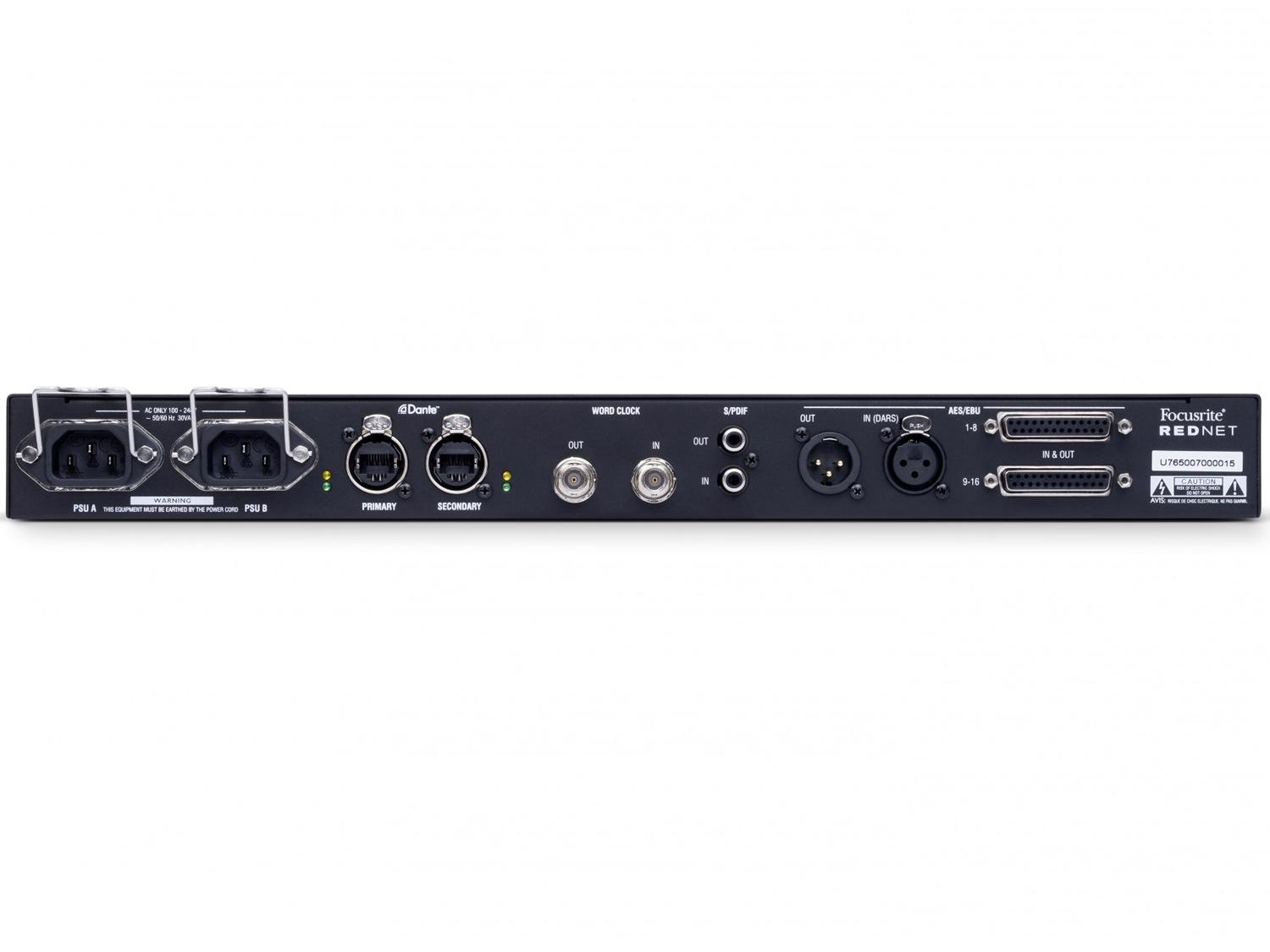 RedNet D16R dispone di 16 canali con connettività AES/EBU da e verso una rete audio Dante. Perfetto per collegare console digitali, amplificatori di potenza o qualsiasi altra dispositivo audio AES3 e qualsiasi rete Dante. RedNet D16R include la Sample Rate Conversion (SRC) su ogni coppia di ingressi per il funzionamento immediato con qualsiasi sorgente AES3. I collegamenti Word Clock e Digital Audio Reference Signal (DARS) forniscono la sincronizzazione con una vasta gamma di hardware, mentre l'I/O S/PDIF permette l'integrazione con apparecchiature come CD o registratori e lettori solid state.