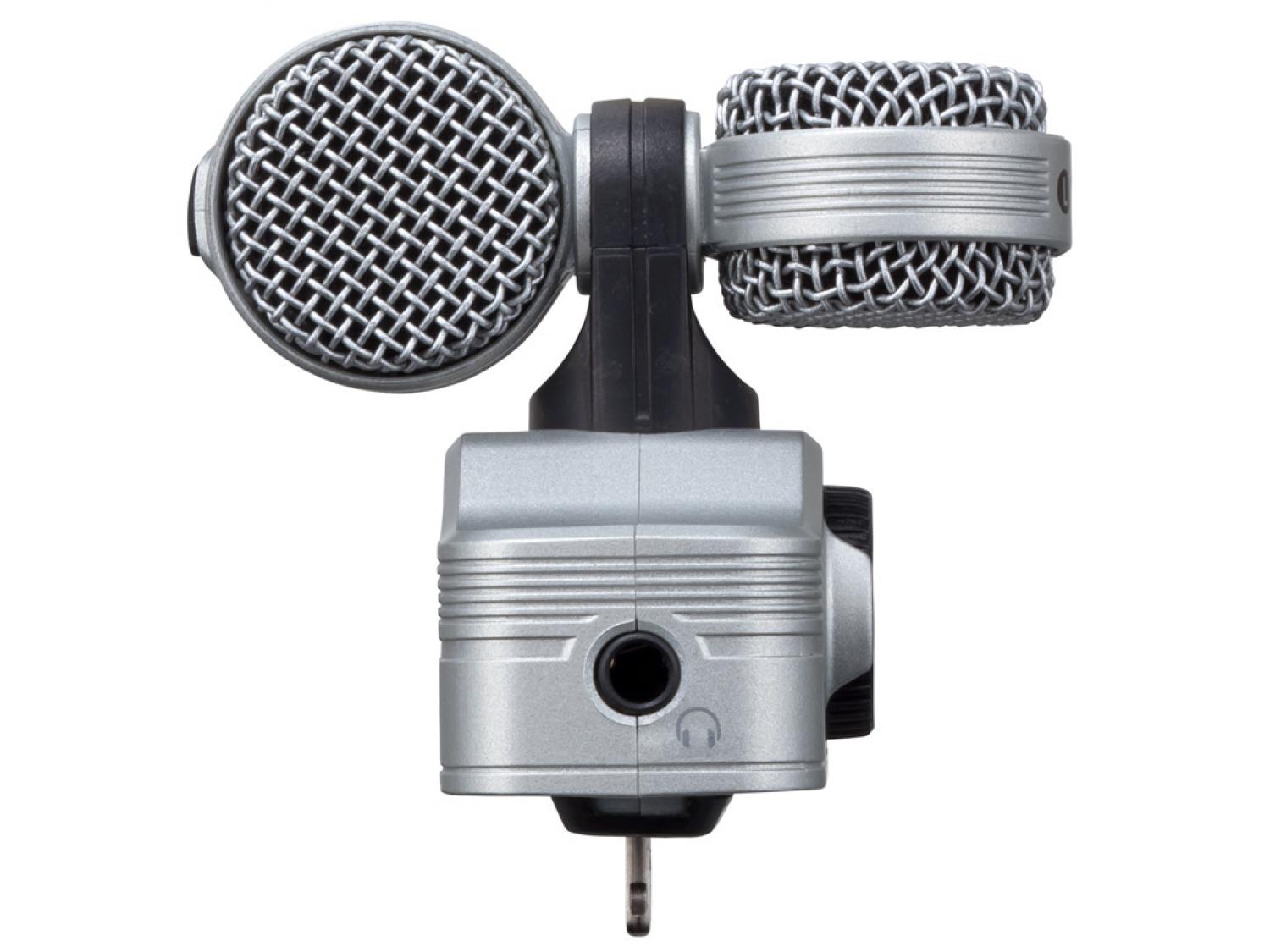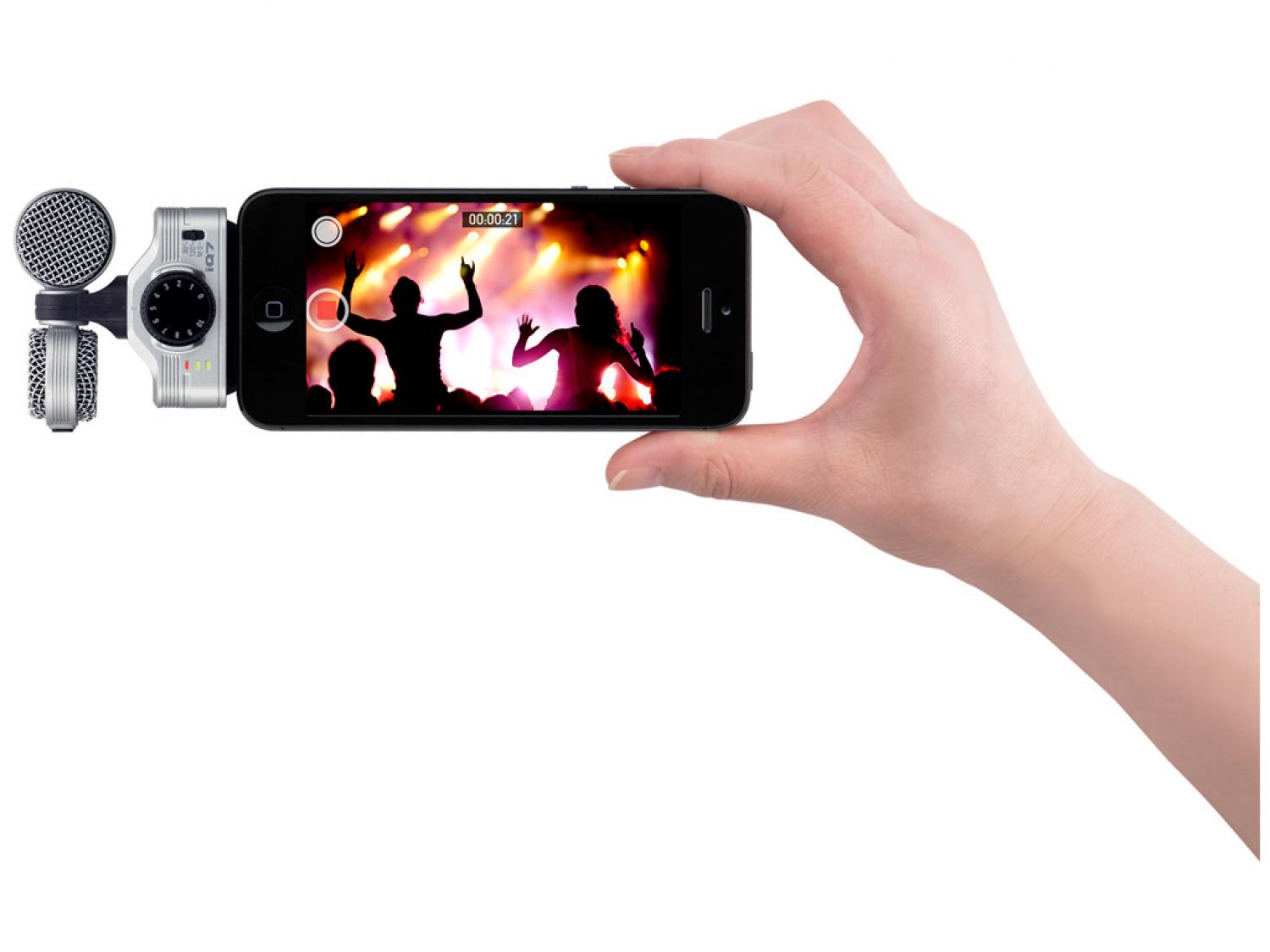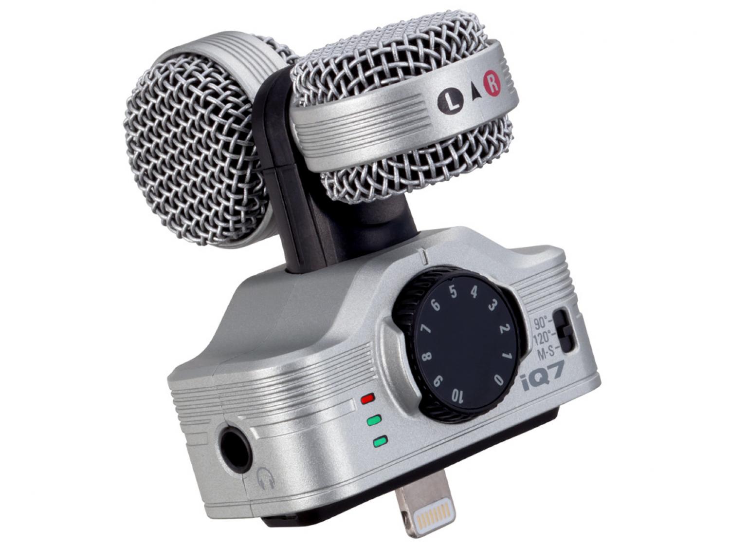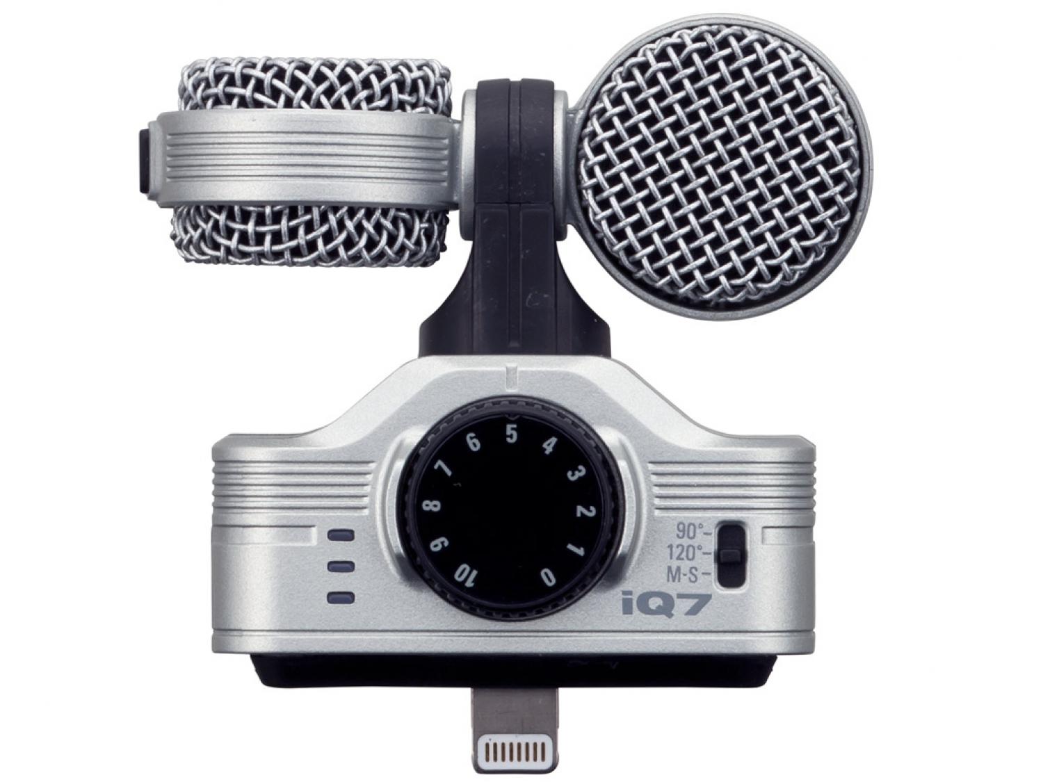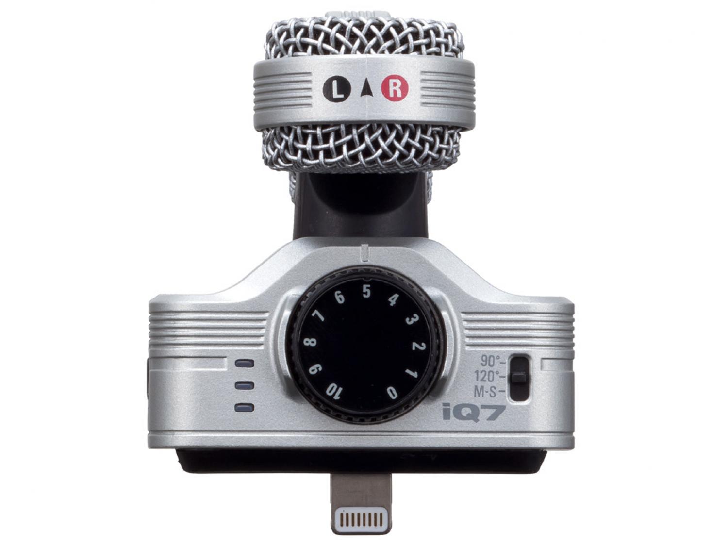 Questo microfono a condensatore Mid-Side stereo, compatto ma ricco di funzionalità, è perfetto per catturare musica e video con un audio eccezionale. Con l'iQ7 è possibile creare registrazioni con un grande suono sul tuo iPhone, iPad e iPod Touch in qualsiasi momento, in qualsiasi luogo. Mid-Side è una tecnica di registrazione avanzata che consente di variare l'ampiezza dell'immagine stereo anche in post-produzione. I due elementi microfonici dell'iQ7 includono un microfono direzionale "Mid" che cattura il segnale proveniente direttamente di fronte al dispositivo iOS, ed un microfono "Side" bidirezionale in grado di catturare l'audio proveniente da entrambi i lati. Un selettore a 3 posizioni permette di impostare la posizione dei microfoni con una angolazione a 90° (con maggior focus sul segnale proveniente dal centro) ed a 120° (per una maggiore spazialità stereofonica). La terza selezione, denominata "M-S", permette la registrazione dell'audio "raw" che consente di bilanciare il segnale Mid e Side in un secondo momento, utilizzando l'app gratuita Zoom Handy Recorder. L'applicazione gratuita, scaricabile dall'iTunes Store, apporta numerose funzionalità al vostro dispositivo iOS: sovraincidere le registrazioni create con l'iQ7, editing di precisione grazie alla visualizzazione della forma d'onda, salvare i file in formato audio non compresso PCM oppure in AAC, etc.