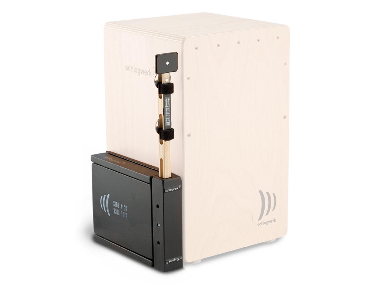 Una combinazione particolarmente efficace di Heck Stick e Side Kick in un unico set. Side Kick si adatta perfettamente alla piastra di montaggio dell'Heck Stick. I due componenti del set possono quindi essere montati su entrambi i lati del cajón uniti o separatamente, a seconda della propria tecnica esecutiva. L'infinita varietà di combinazioni possibili consente di creare di volta in volta un setup personalizzato. La diversità e la flessibilità del cajon possono essere ulteriormente ampliate grazie a diversi add-on. Lo scopo è quello di raggiungere sound completamente nuovi e una personalizzazione del suono generale del Cajon. Con lo stesso design e la stessa qualità standard robusta di Schlagwerk.