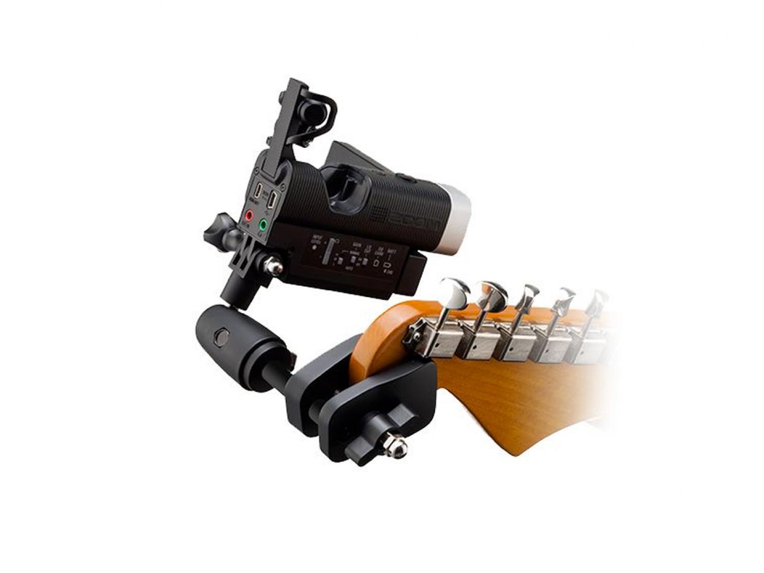 Il supporto opzionale per paletta GHM-1 è un sistema per montare lo Zoom Q4 Handy Video Recorder sulla paletta della tua chitarra. Con il GHM-1, è possibile effettuare splendide riprese delle mani del chitarrista / bassista in primo piano come si vede nei video musicali professionali.