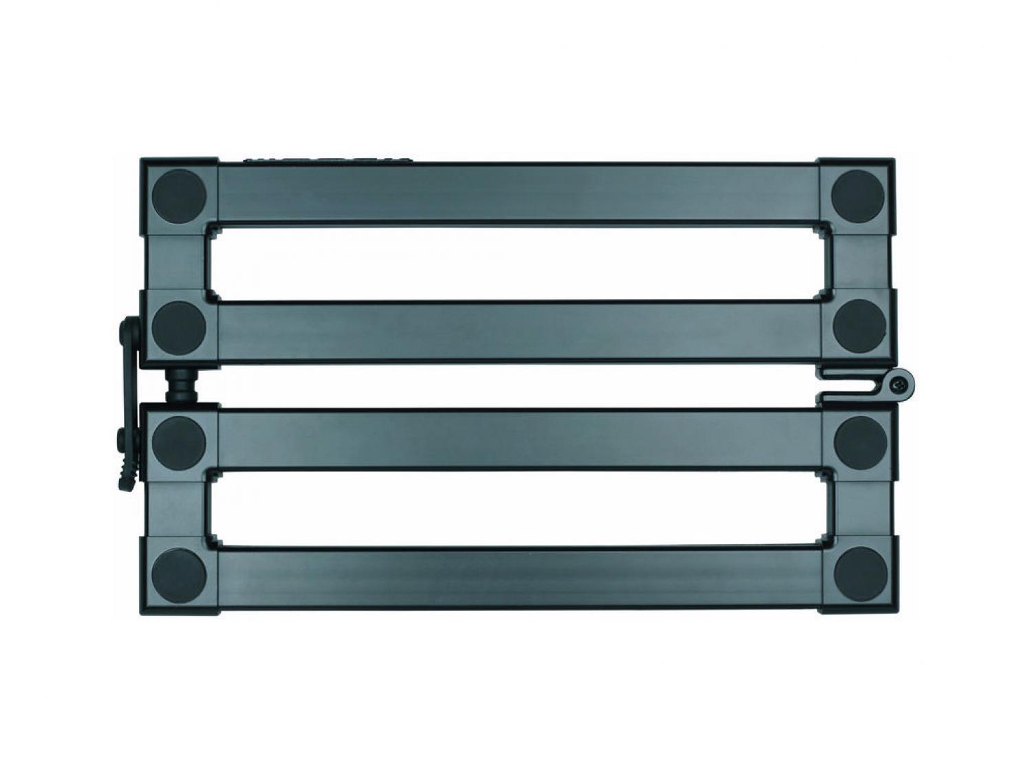 Ancora una volta Mooer dimostra di avere idee innovative e di realizzare design perfettamente rispondenti alle esigenze pratiche dei musicisti. La speciale struttura brevettata della nuova pedalboard PB-10 permette infatti di sfruttare l'area di posizionamento dei pedali in più modi diversi, grazie ad una particolare forma pieghevole che permette di aprire in due e a piacimento la pedaliera stessa. Si può quindi sfruttare interamente la larghezza o la lunghezza, a seconda delle misure dei propri pedali, o addirittura posizionarli ad angolo per un accesso facilitato a tutti gli effetti. La tecnologia di stampaggio unica, combinata con una speciale lega in alluminio, permette inoltre di ottenere una struttura rigida ma leggera di supporto per i pedali. La splendida finitura nero opaco è abbinata con un ottimo design antiscivolo della parte inferiore per garantire un utilizzo stabile sul palco. La particolare borsa, appositamente progettata, può ospitare molti effetti di varie dimensioni. Il tessuto resistente e l'imbottitura spessa proteggono in maniera impeccabile le apparecchiature, le dimensioni non ingombranti permettono un'incredibile facilità d'uso e di trasporto.
