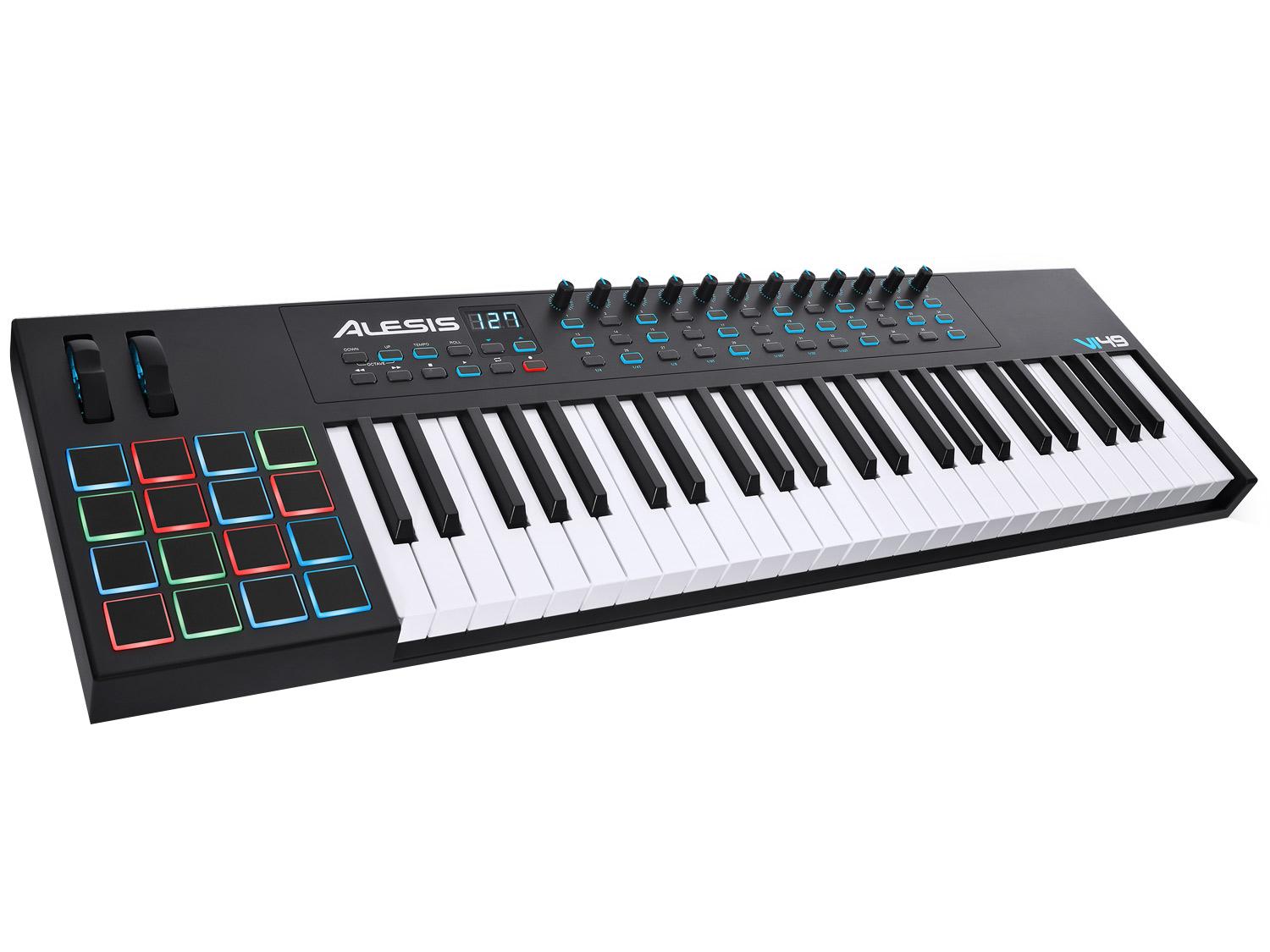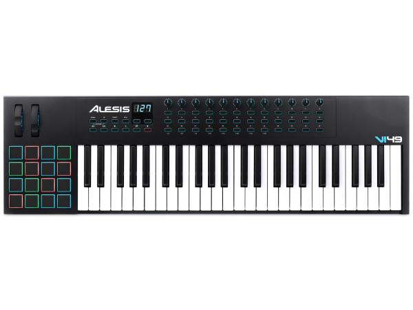 L'Alesis VI49 è una tastiera controller MIDI / USB avanzata che consente di prendere il comando del tuo software musicale con una serie di pad, manopole e pulsanti. Con 49 tasti semipesati sensibili alla velocity con pulsanti Octave Up/Down e aftertouch, è possibile espandere la gamma melodica della tastiera e riprodurre linee di basso, accordi e melodie. VI49 dispone anche di 12 manopole e 36 pulsanti assegnabili per manipolare plugin di effetti e strumenti virtuali: aprire e chiudere filtri, regolare i livelli di volume, attivare effetti, affinare parametri, e molto altro ancora. 16 trigger pad sensibili alla dinamica RGB consentono di avviare le clip o finger drum con una risposta eccezionale ed un feedback visivo colorato. Inoltre, le pitch e modulation wheeel espandono le capacità espressive dell'esecutore.