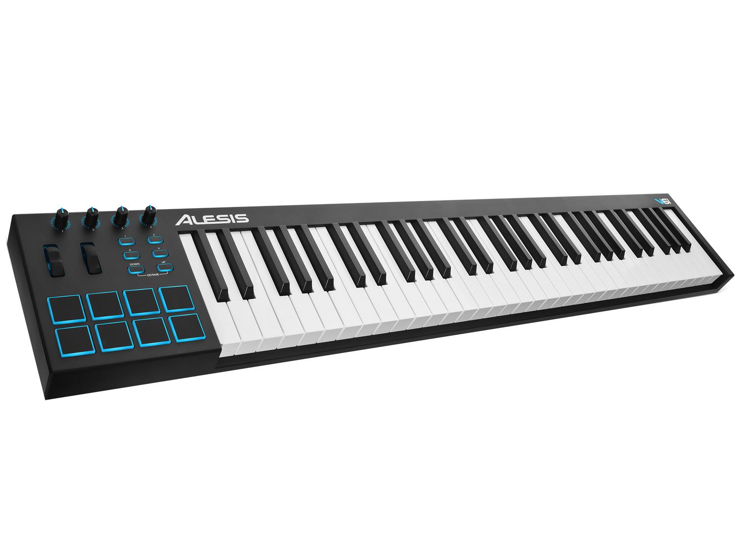 L'Alesis V61 è un controller MIDI potente, intuitivo che permette di prendere il controllo del proprio software musicale con una serie di pad, manopole e pulsanti. Con 61 tasti full-size sensibili alla velocity e pulsanti di ottava Up/Down, è possibile espandere la tastiera all'intera gamma melodica e riprodurre linee di basso, accordi e melodie. L'Alesis V61 dispone anche di quattro manopole e pulsanti assegnabili per la gestione di plugin effetti e strumenti virtuali: aprire e chiudere filtri, regolare i livelli del volume, attivare effetti, modificare parametri, ed altro ancora. Otto pad retroilluminati sensibili alla velocity consentono di avviare clip o finger drum con una risposta eccezionale, mentre le pitch e modulation wheel espandono le capacità espressive delle tue performance.